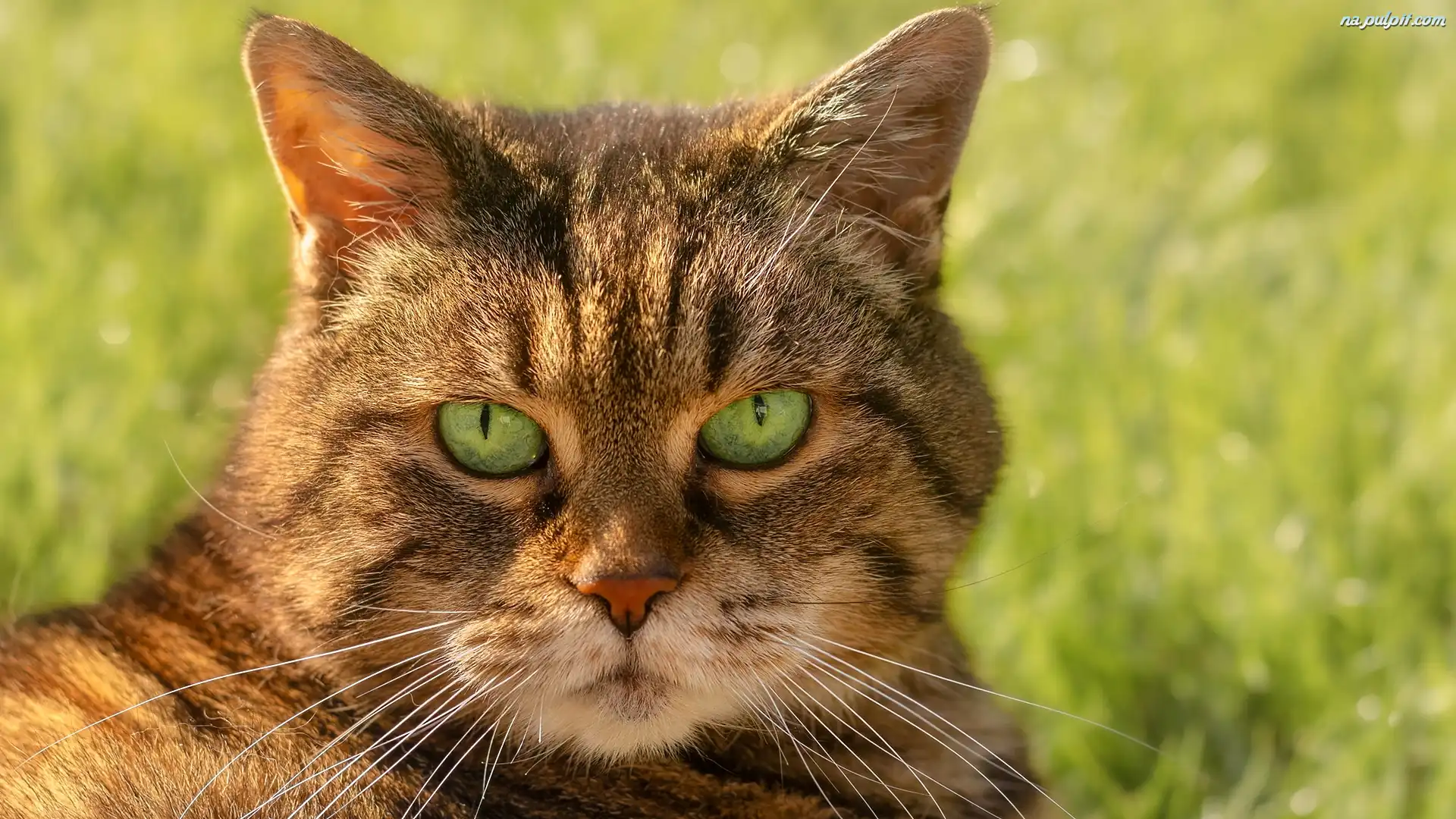 Oczy, Bury, Pyszczek, Zielone, Kot, Trawa Na Pulpit