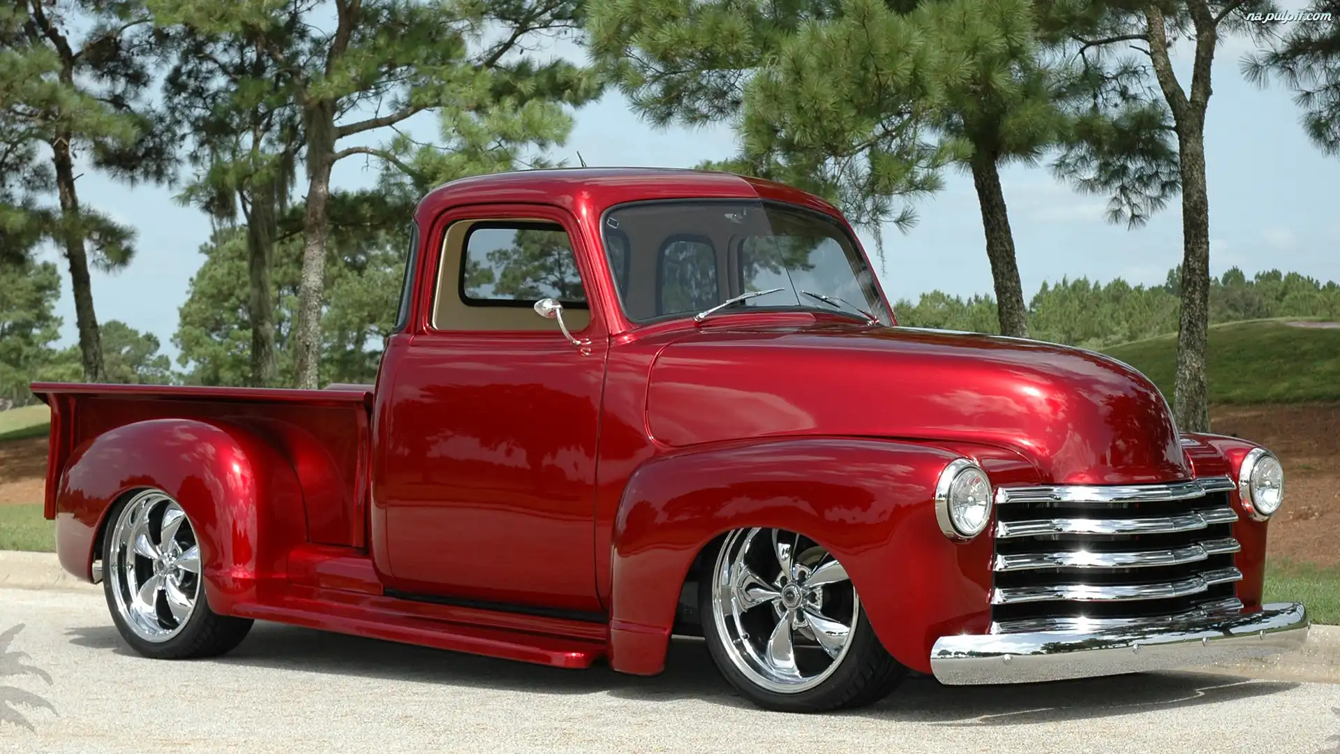 1949, Chevy, Czerwony, Pick-Up Na Pulpit