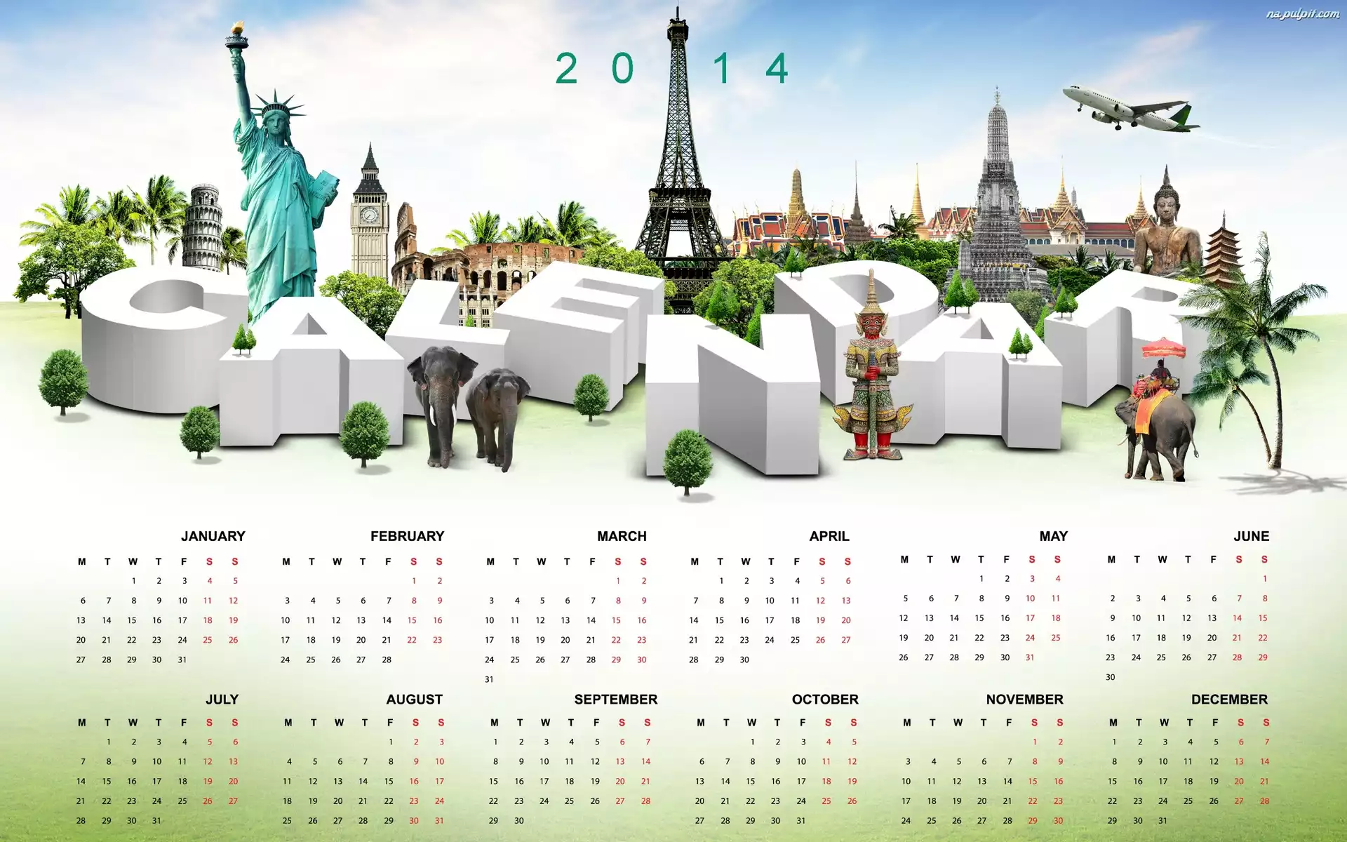 2014, Świata, Budowle, Słynne, Kalendarz Na Pulpit