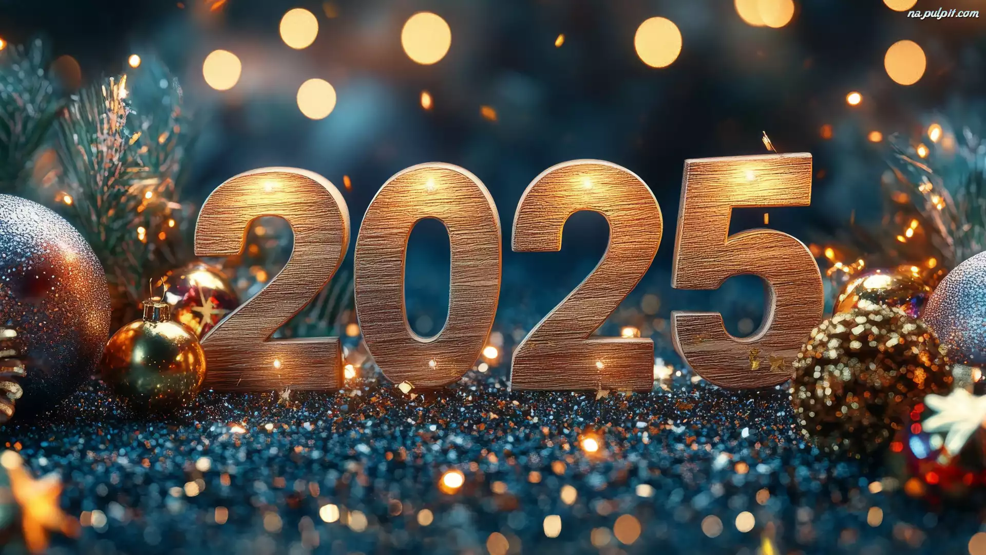 Bombki, Nowy Rok, 2025, Światła, Data Na Pulpit