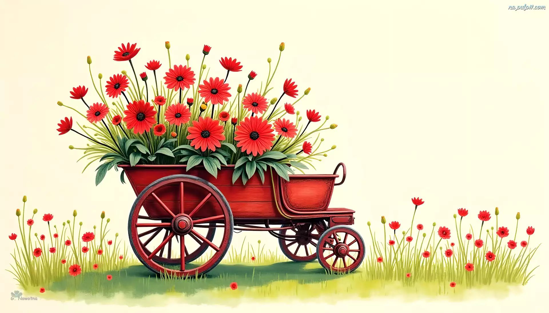 Czerwone, Kwiaty, Wózek, 2D Na Pulpit