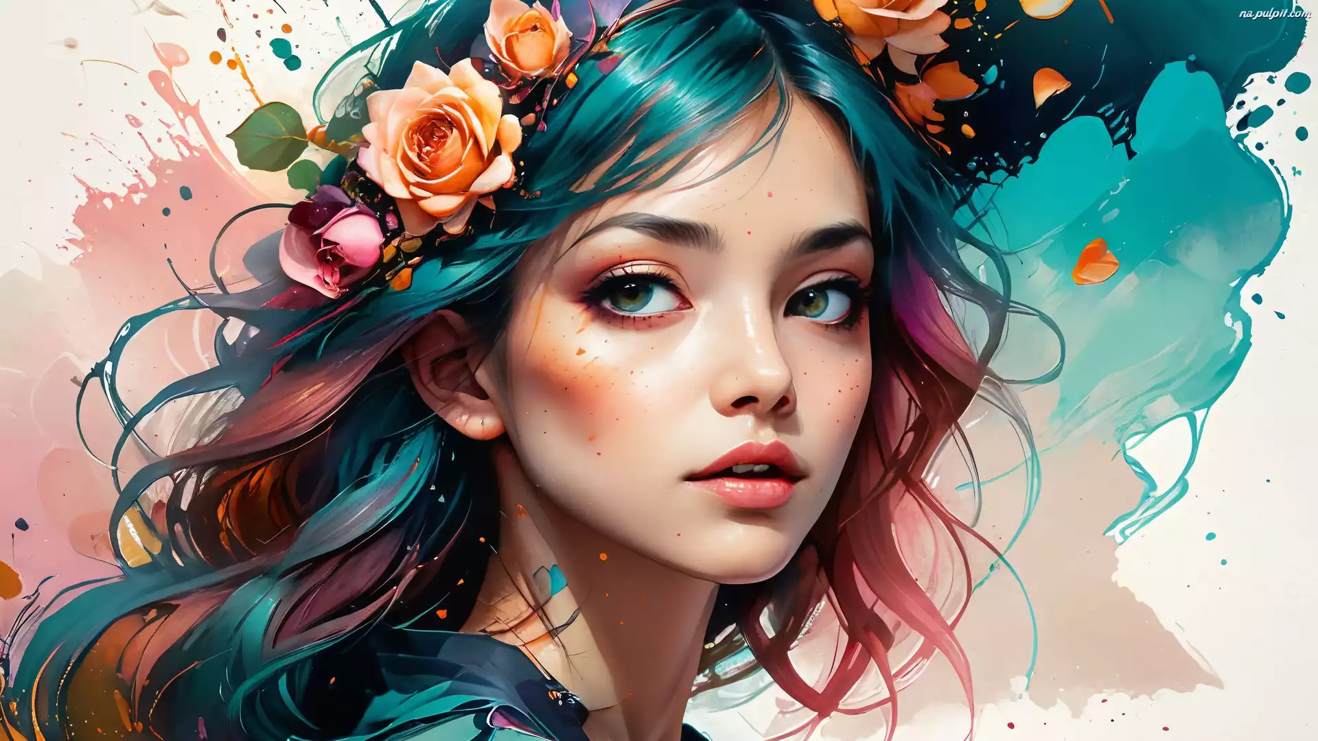 Dziewczyna, Portret, Kwiaty, 2D Na Pulpit