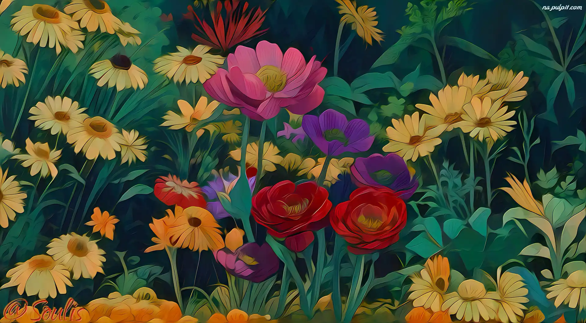 Kwiaty, Kolorowe, Grafika, 2D Na Pulpit