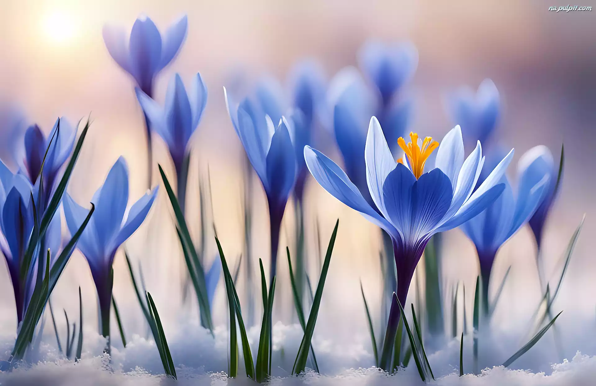 Niebieskie, Krokusy, Kwiaty, 2D Na Pulpit