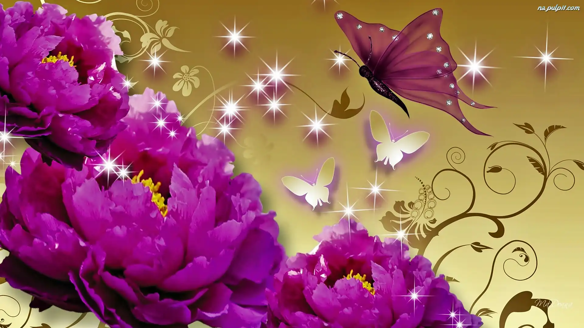 2D, Motyle, Piwonie, Grafika Na Pulpit