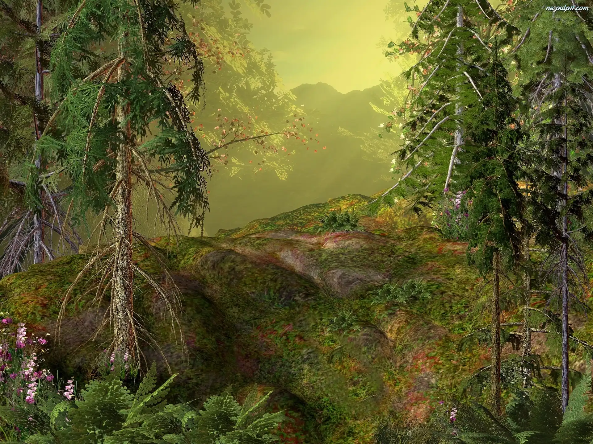 3D, Las, Drzewa, Góry Na Pulpit