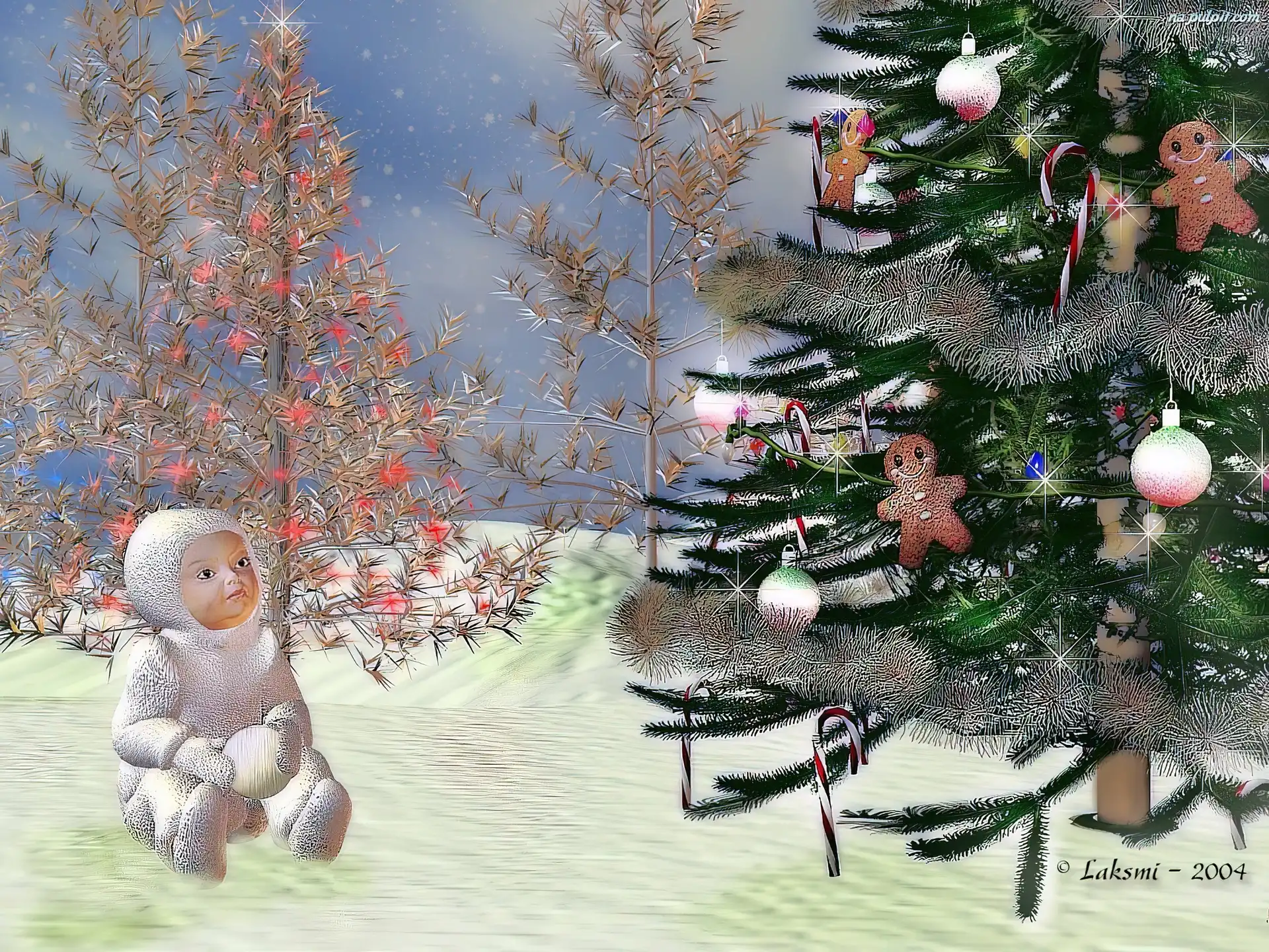 3D, Åšnieg, Dziecko, Choinka Na Pulpit