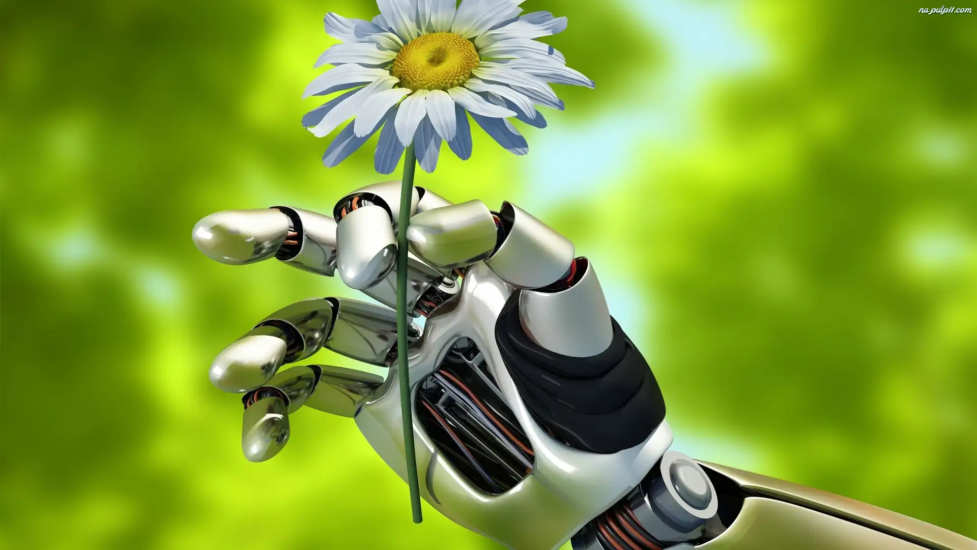 3D, Ręka, Margarytka, Kwiatek, Robot