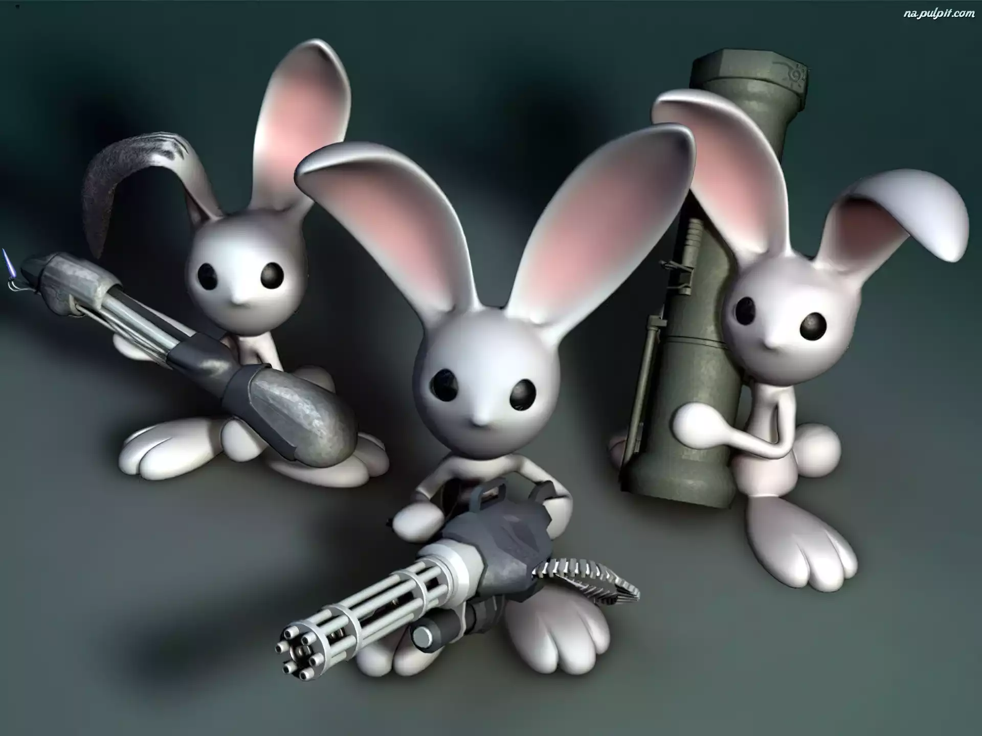 3d, Zajączki, Wojownicze, Broń Na Pulpit