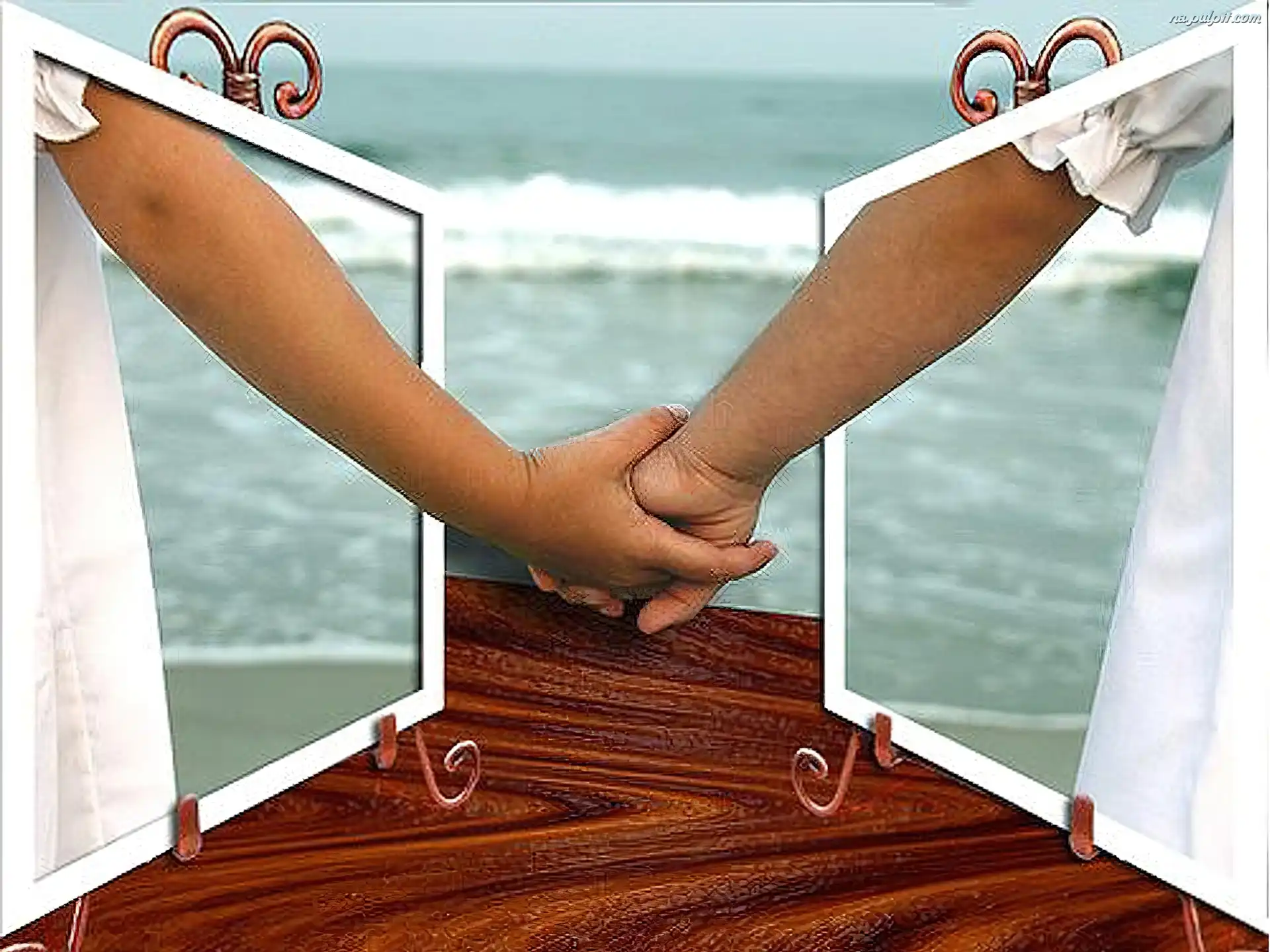 4D, Miłość, Para, Morze, Dłonie Na Pulpit
