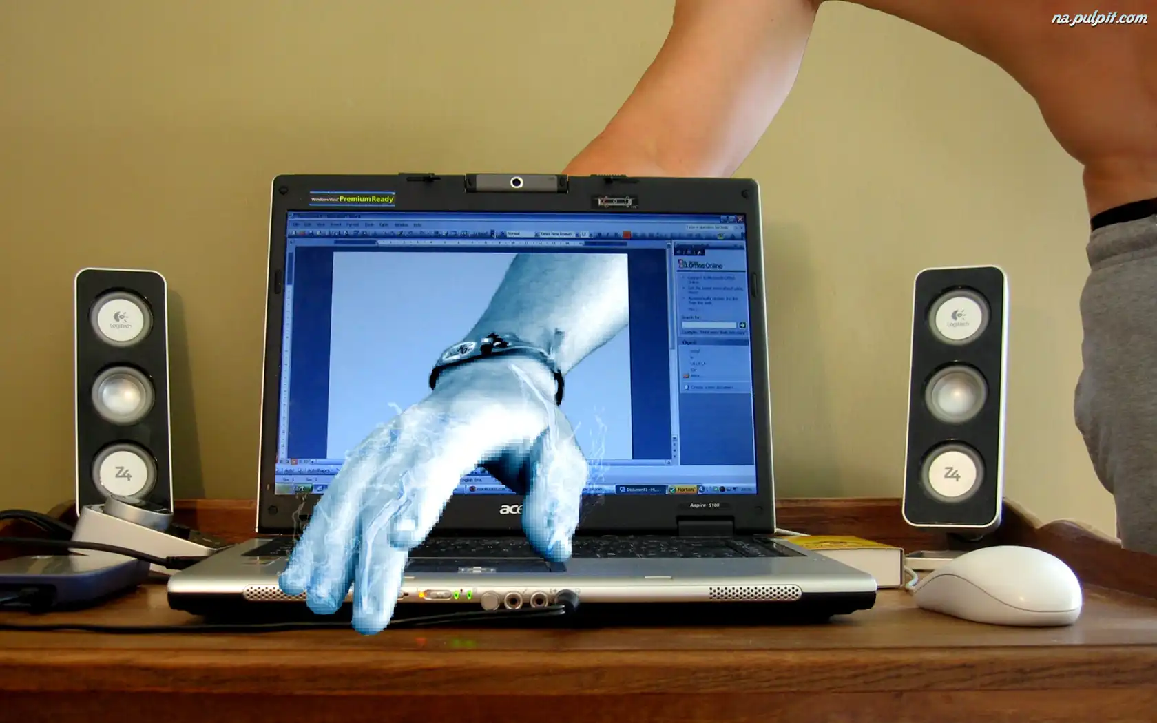 4D, Monitor, Ręka, Laptop Na Pulpit