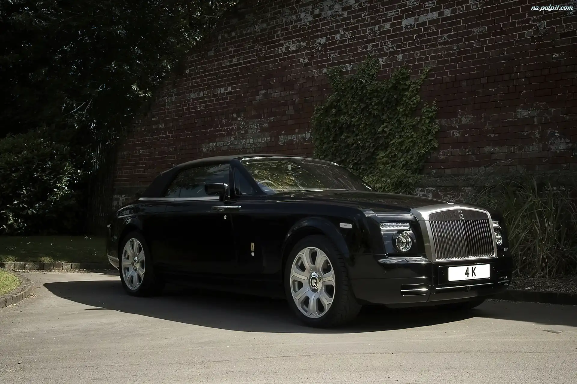4K, Czarny, Rolls-Royce Phantom Drophead Na Pulpit
