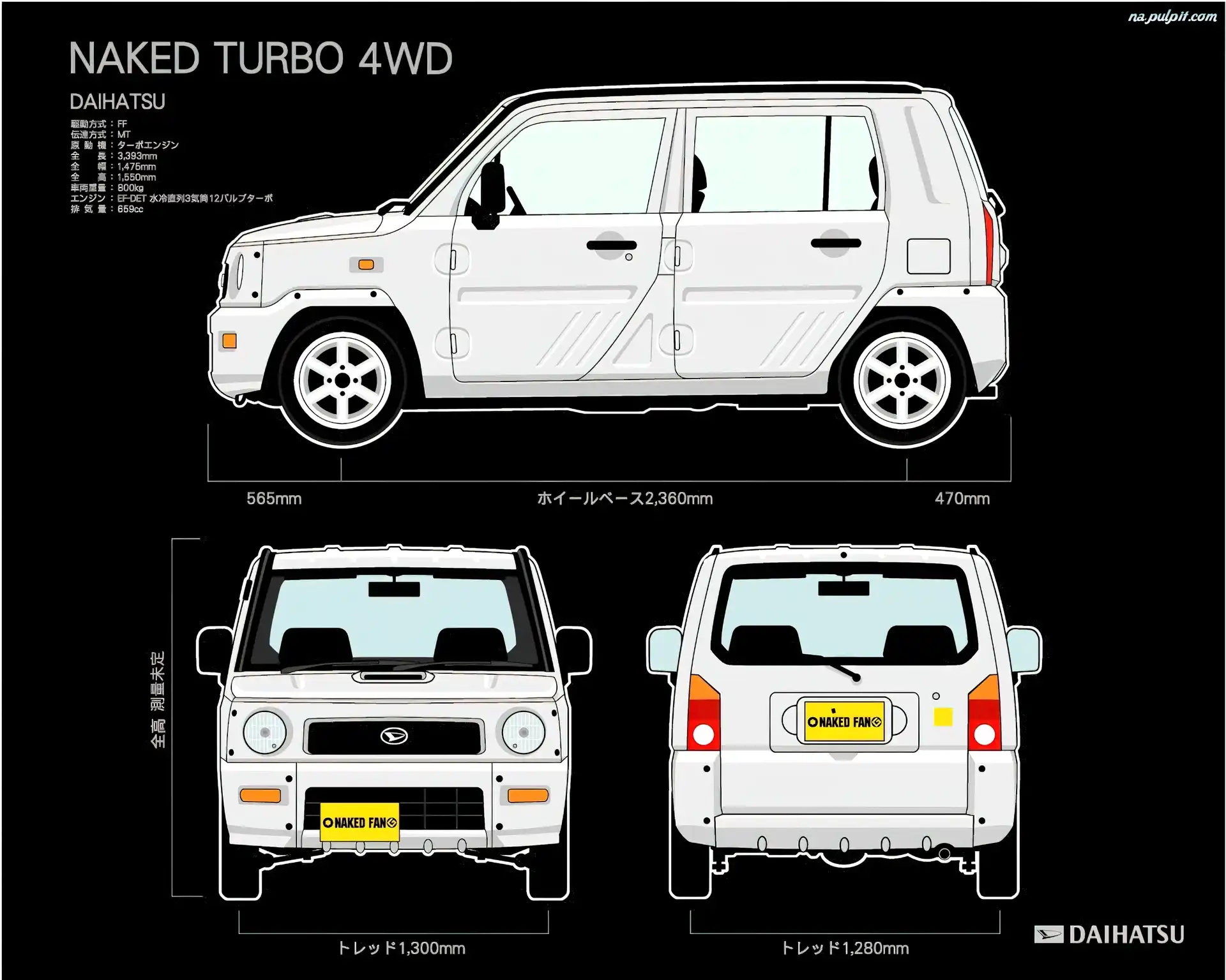 Wymiary, Daihatsu Naked, 4WD Na Pulpit