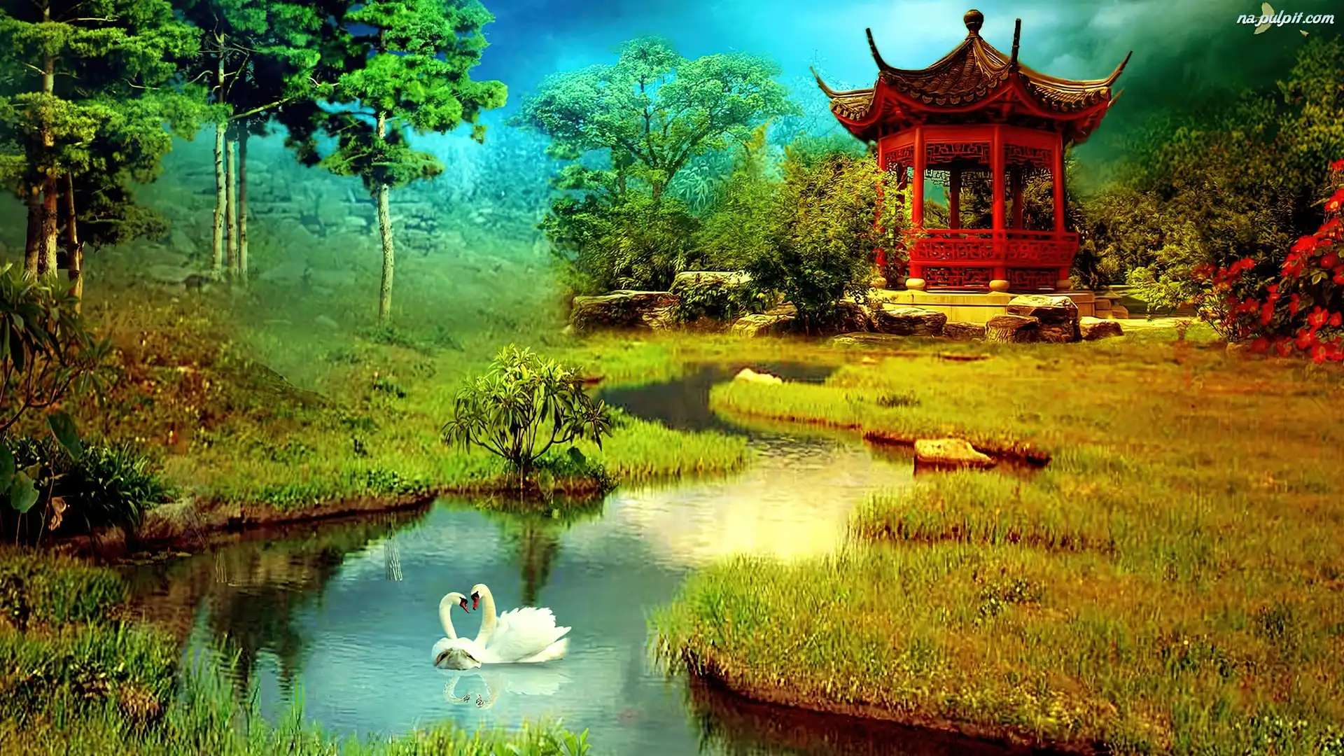 Drzewa, Łabędzie, Woda Na Pulpit