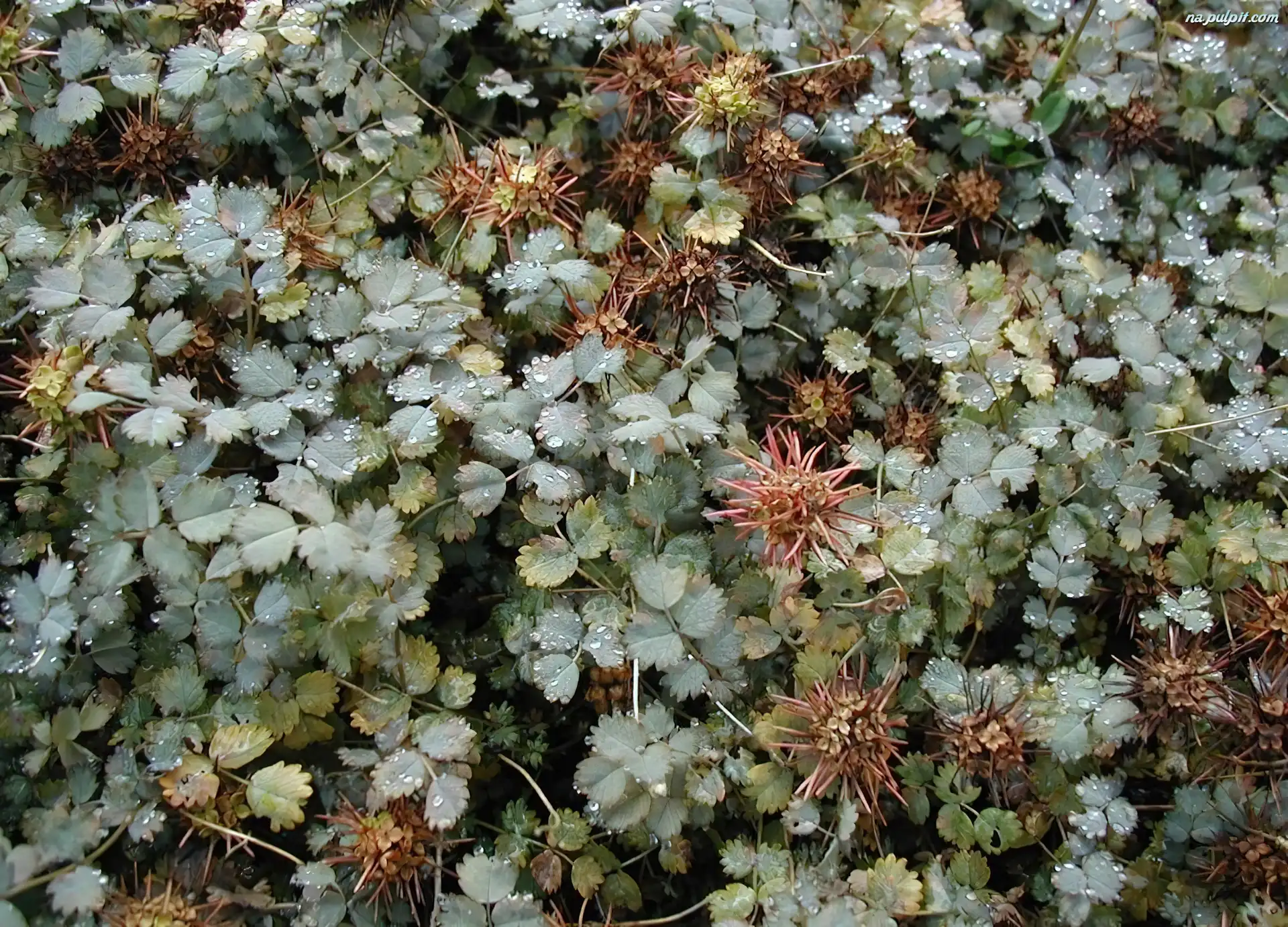 Acena Buchanana Główka, Aceny Buchanana Acena Buchanana, Zielone, Listki Aceny Buchanana, Kolczaste, Owoce Zielone, Listki Listki, Acena Buchanana, Małe Acena Buchanana Acena Buchanana