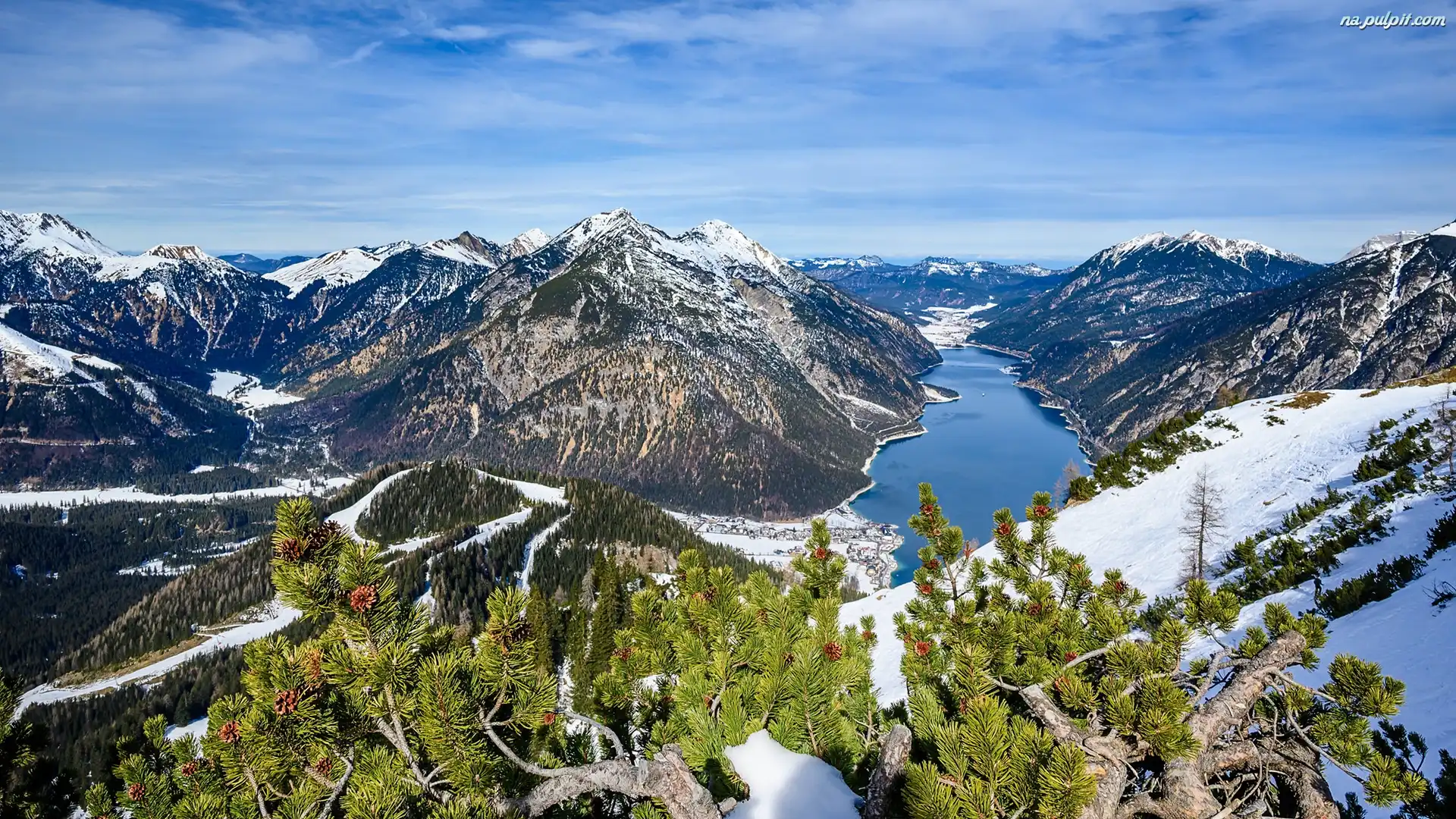 Achental, Austria, Góry, Achensee, Krzewy, Jezioro, Zima, Dolina, Drzewa Na Pulpit