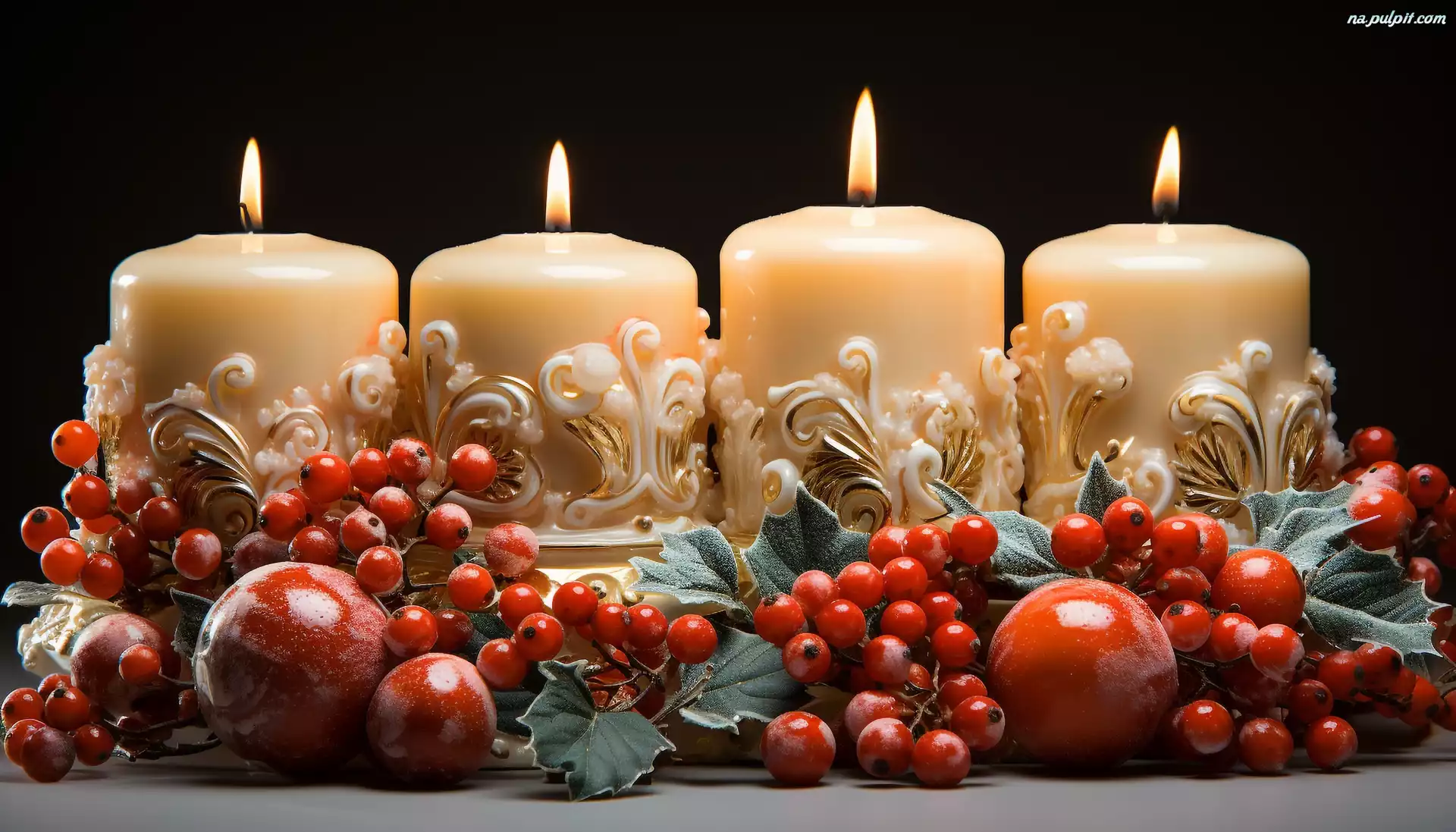 Jabłka, Adwent, Świece, Liście, Jagody Na Pulpit