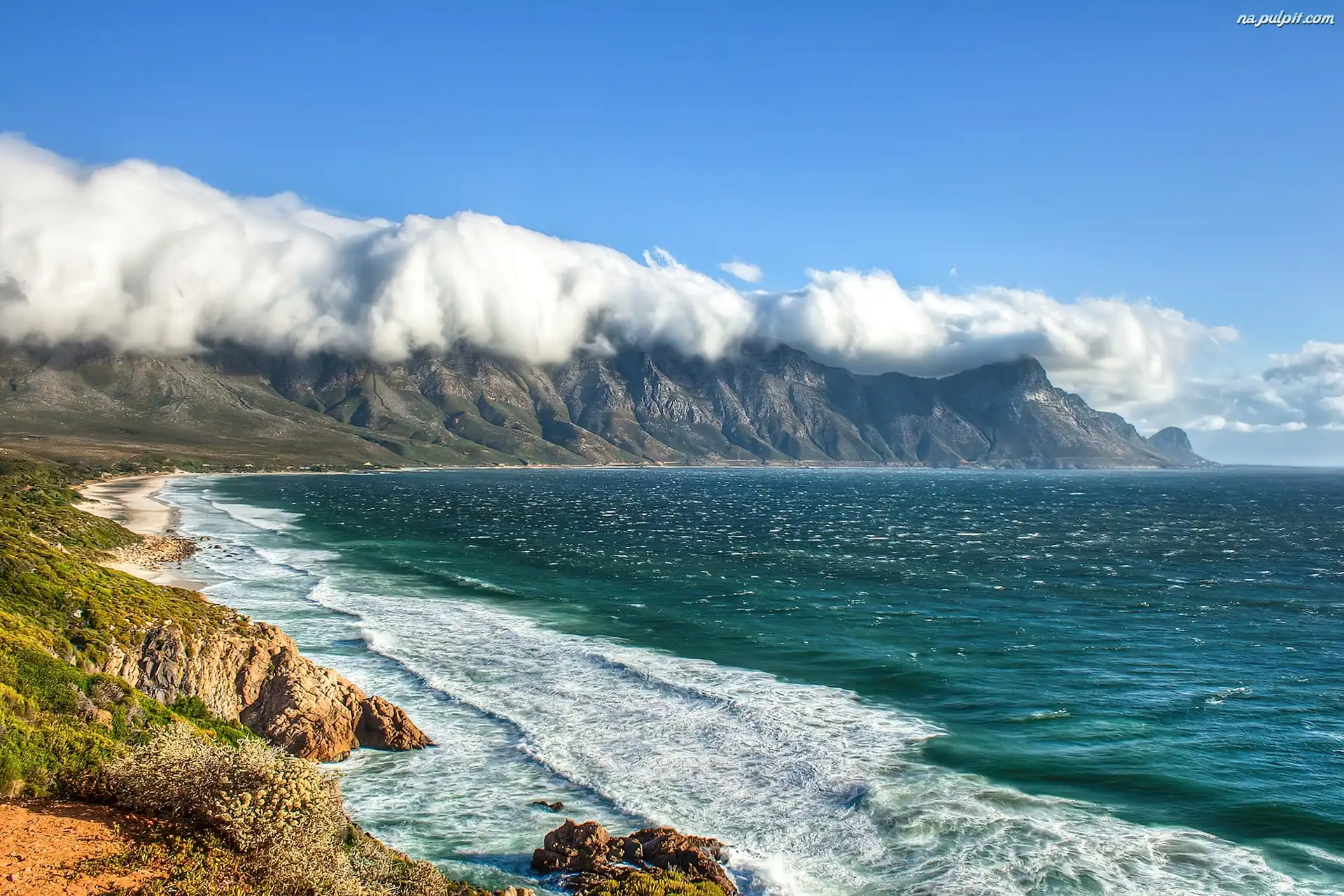 Południowa Afryka, Chmury, Góry, Morze, Kogel Bay Na Pulpit