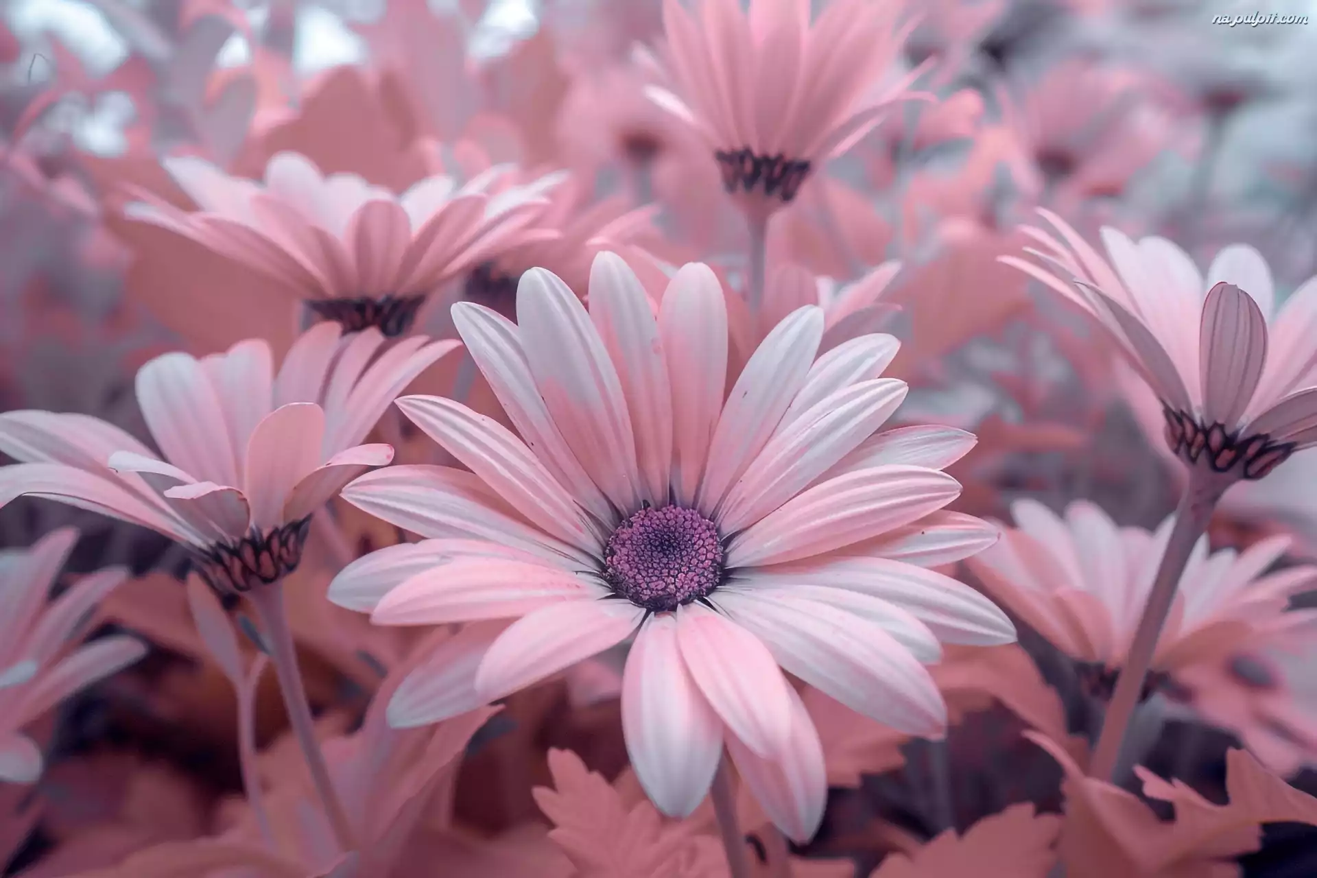 Kwiaty, Różowe, Stokrotki afrykańskie Na Pulpit
