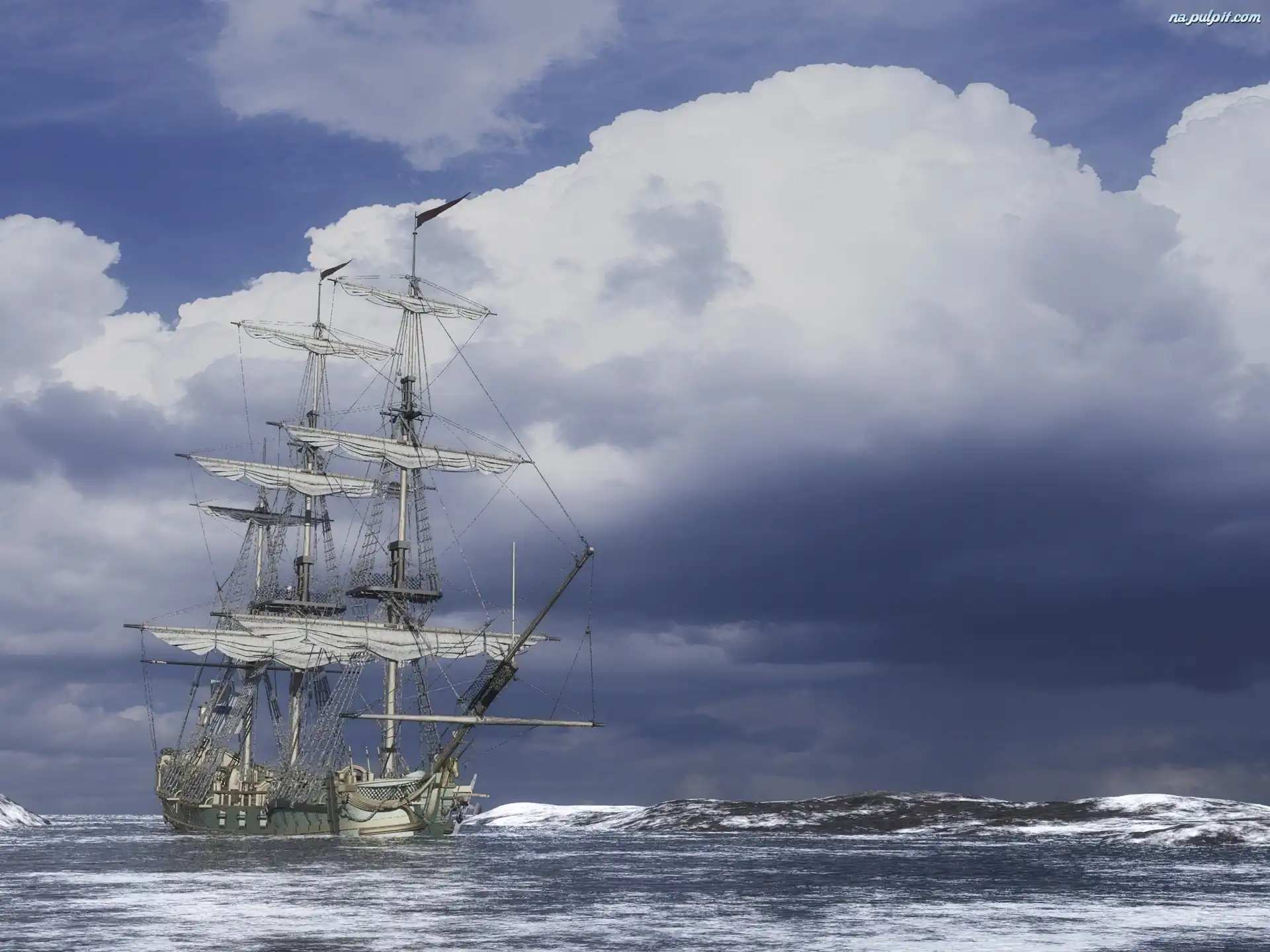 Chmury, Żaglowiec, Morze Na Pulpit