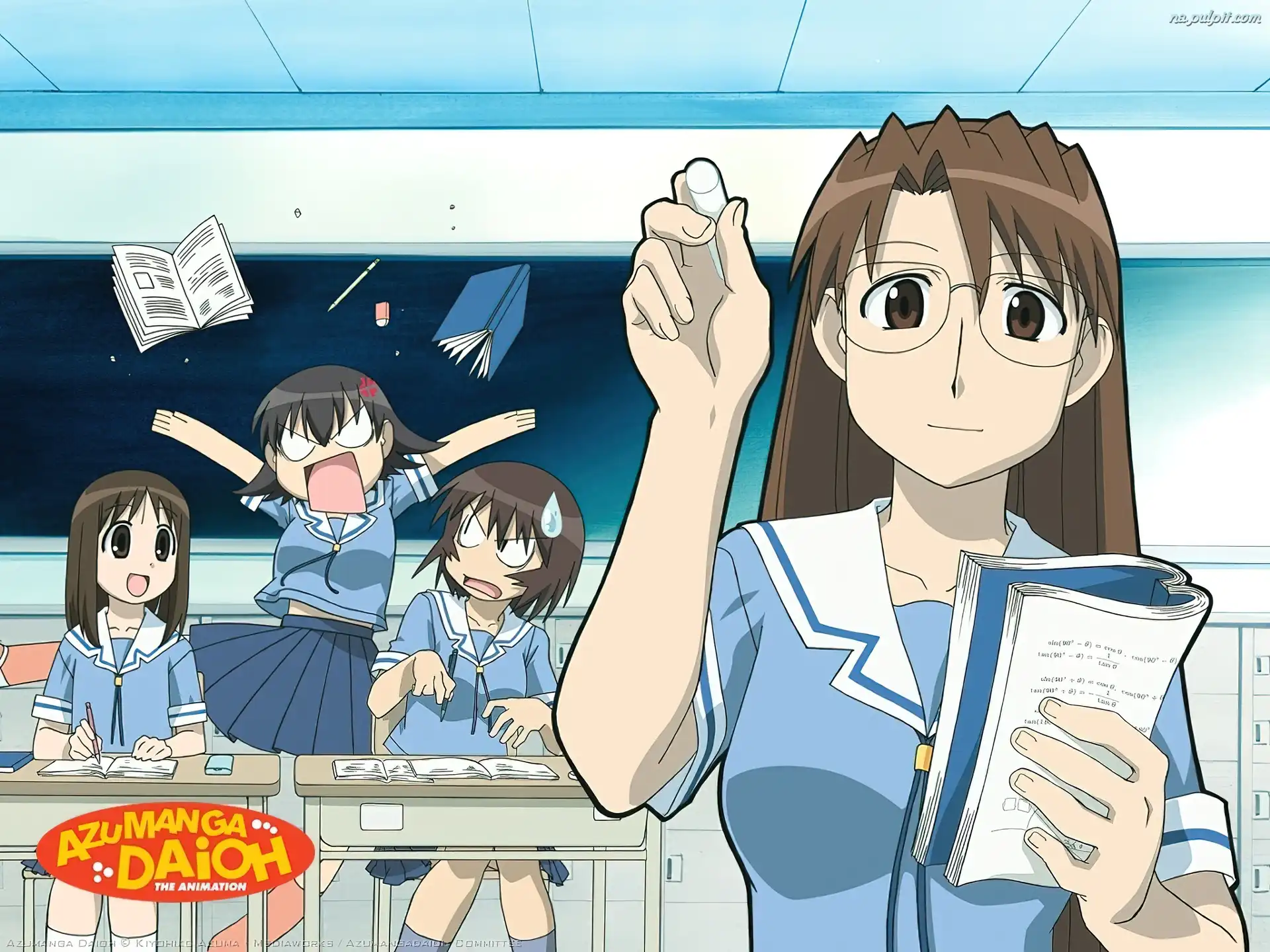 agresja, szkoła, Azumanga Daioh, napis Na Pulpit