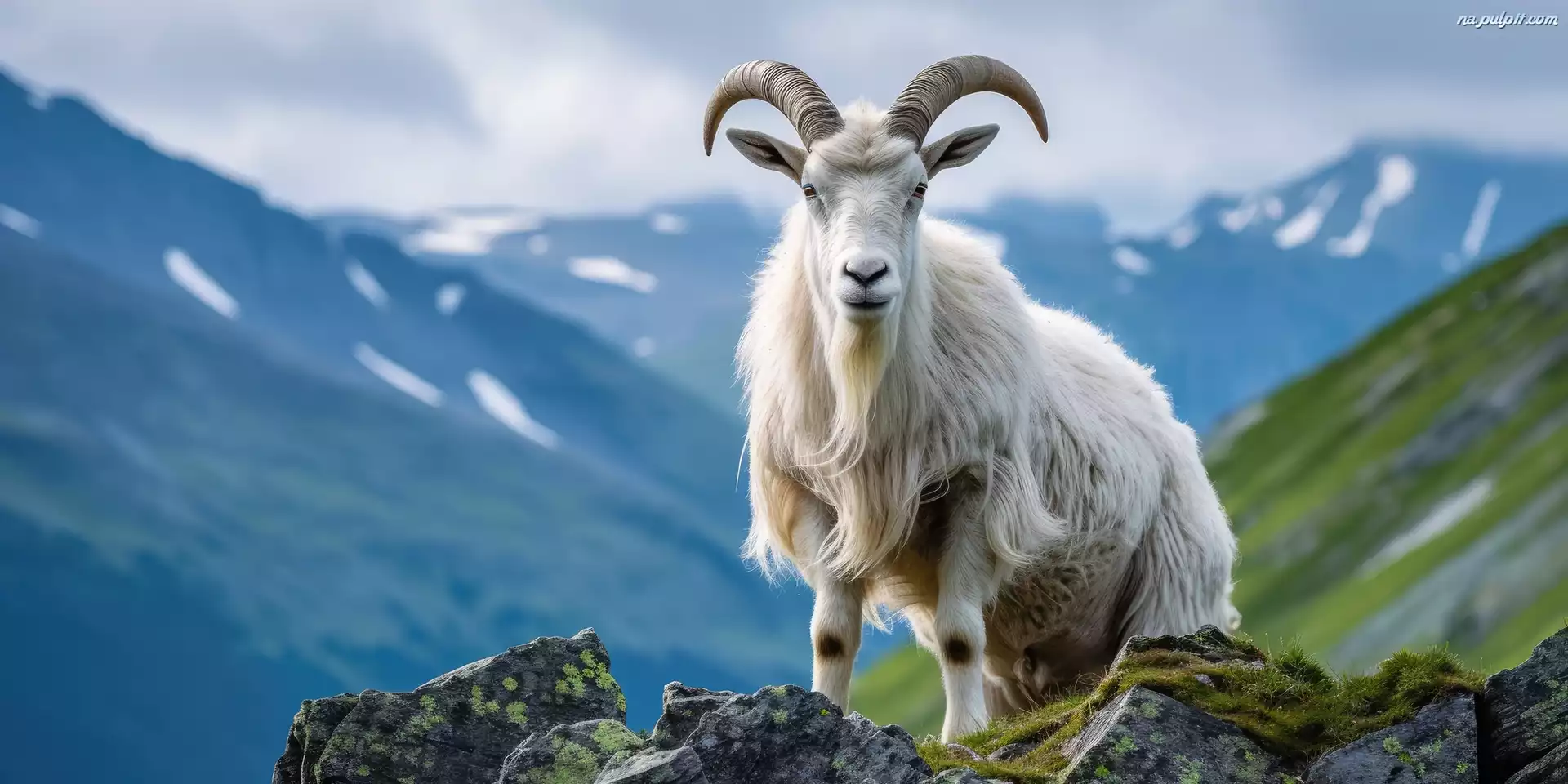 Góry, Biała, Kozica górska, Skały, Koza, Grafika AI Na Pulpit