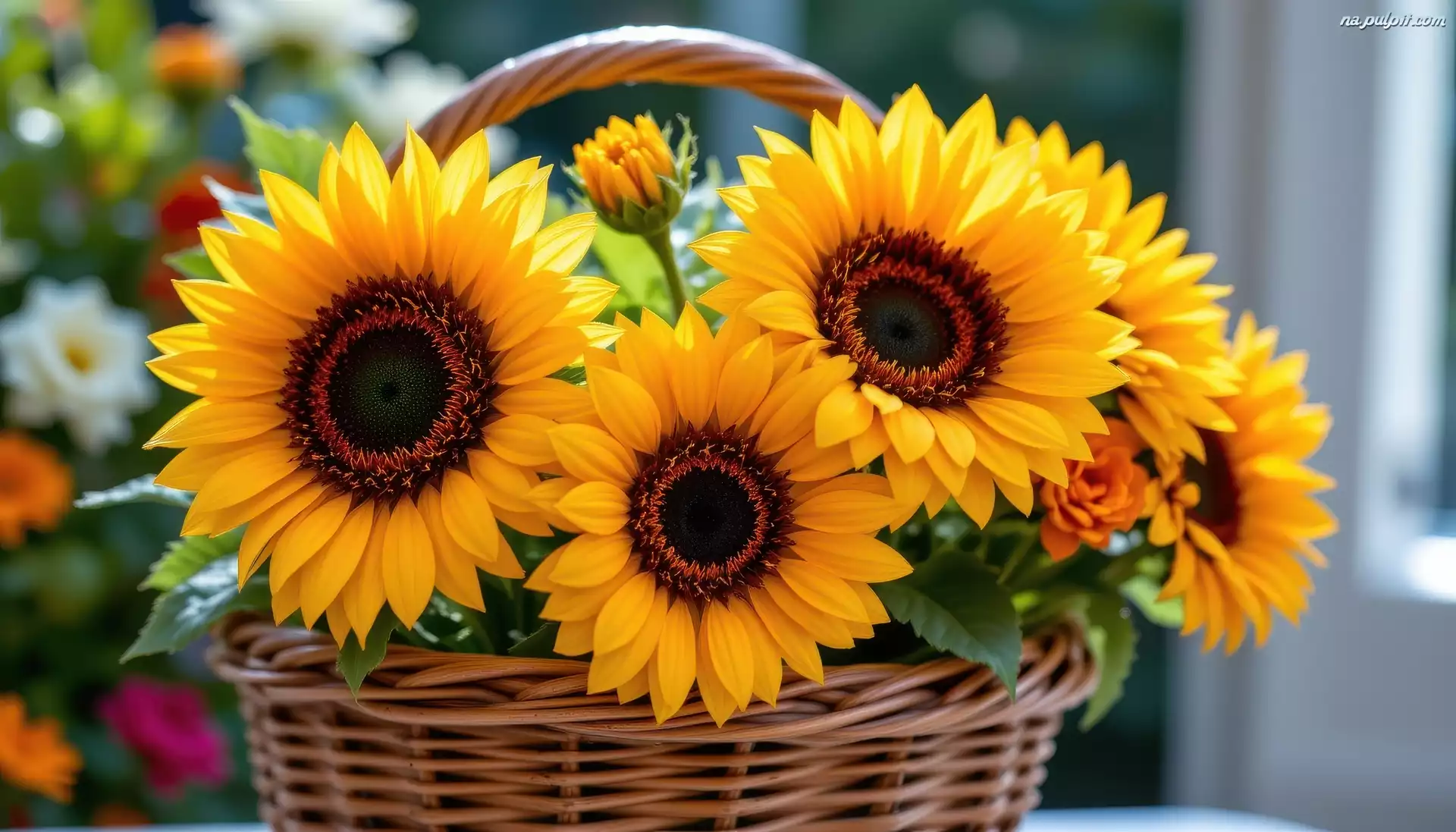 Kwiaty, Słoneczniki, Koszyk, AI Na Pulpit