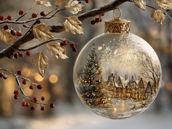 Gałązka, Boże Narodzenie, Złote, Liście, Bombka, Grafika AI