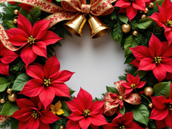 AI, Wstążka, Gwiazda betlejemska, Wianek, Boże Narodzenie, Kwiaty, Dzwonki