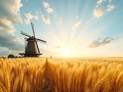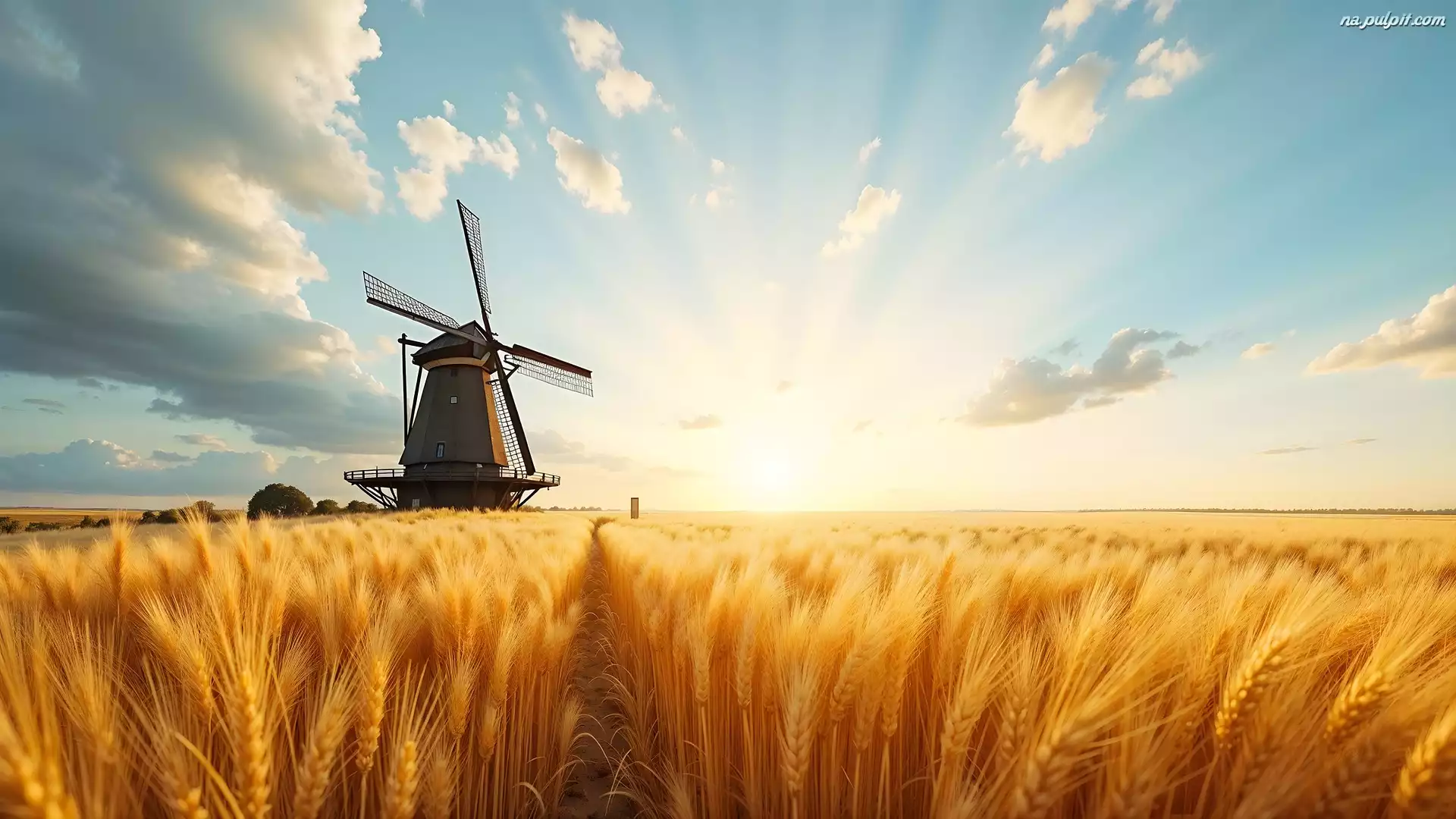 Pole, Zboże, Wiatrak, AI Na Pulpit