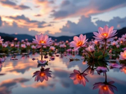 Różowe, Kwiaty, Jezioro, AI Na Pulpit