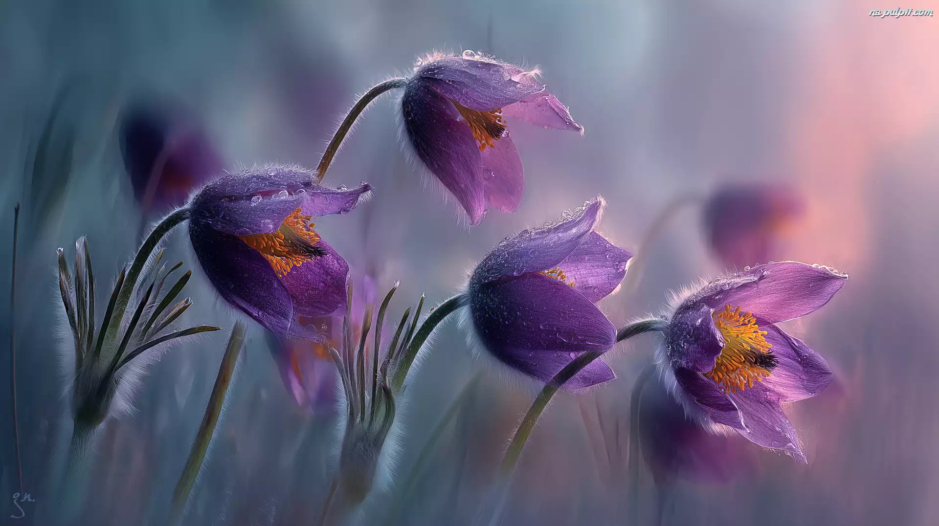 Sasanki, Fioletowe, Grafika AI Na Pulpit
