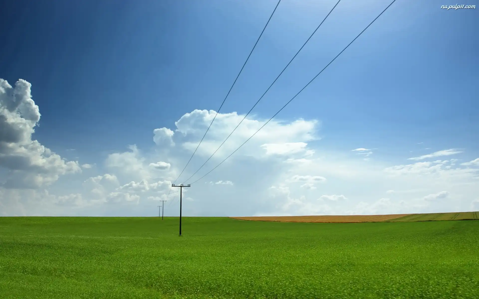 Łąka, Linia, Energetyczna, Niebo, Duża, Chmury Na Pulpit