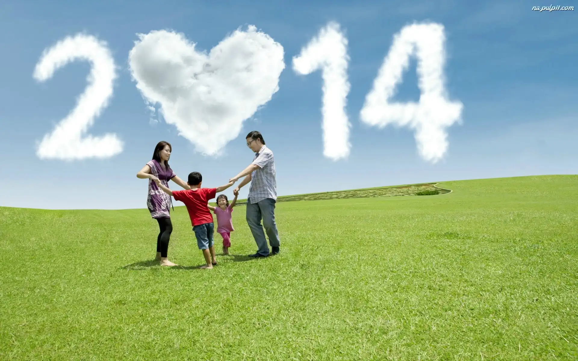 Łąka, Rok, 2014, Chmury, Rodzina, Nowy
