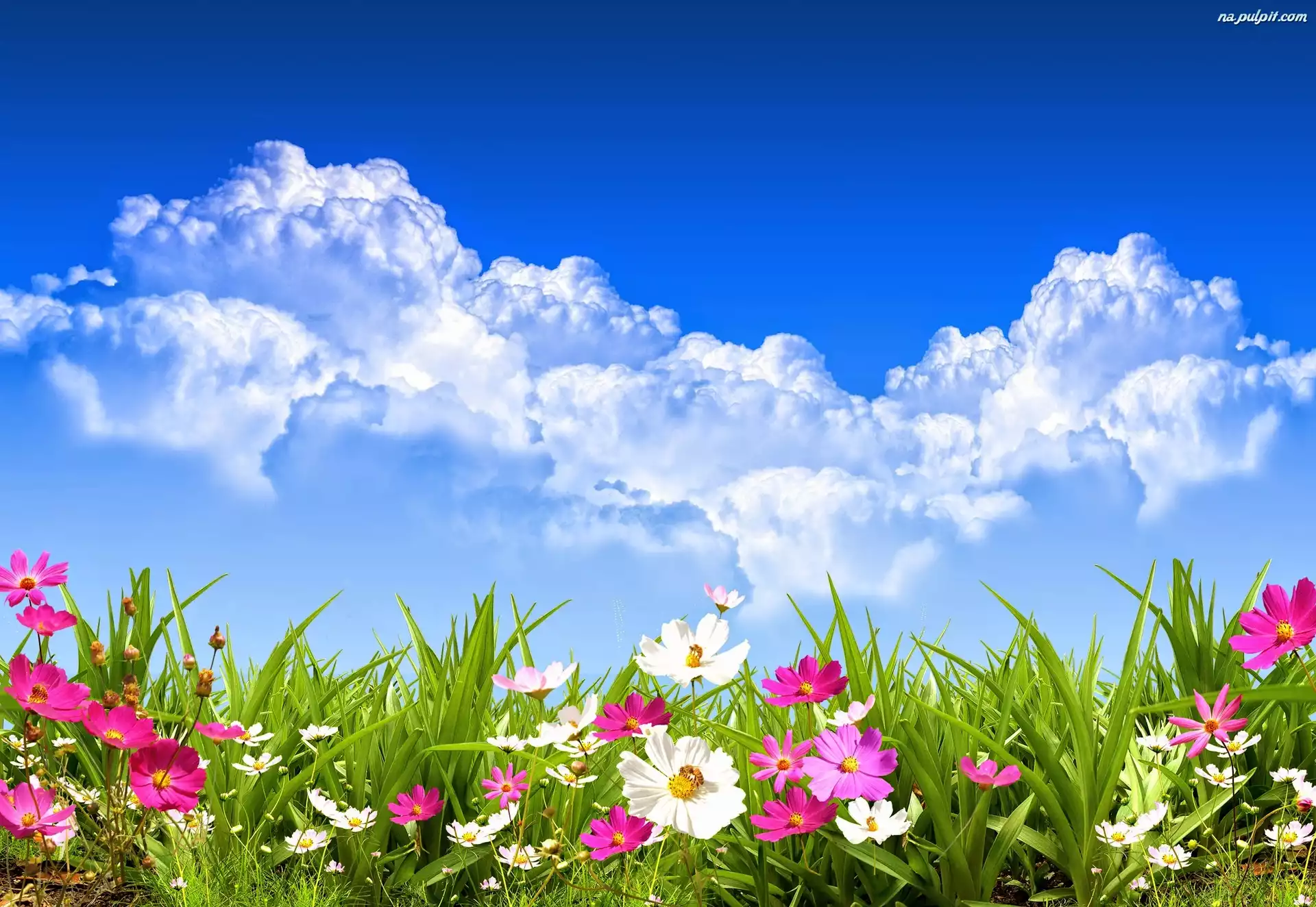 Chmury, Łąka, Kwiaty Na Pulpit