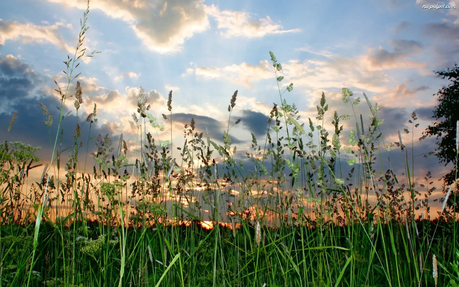 Chmury, Łąka, Trawy