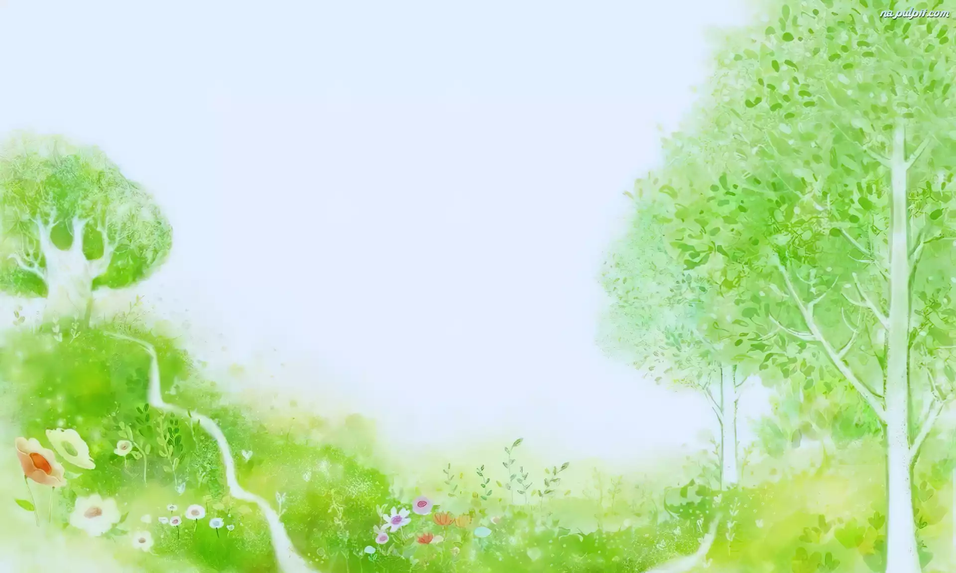 Drzewa, Łąka, Kwiaty Na Pulpit