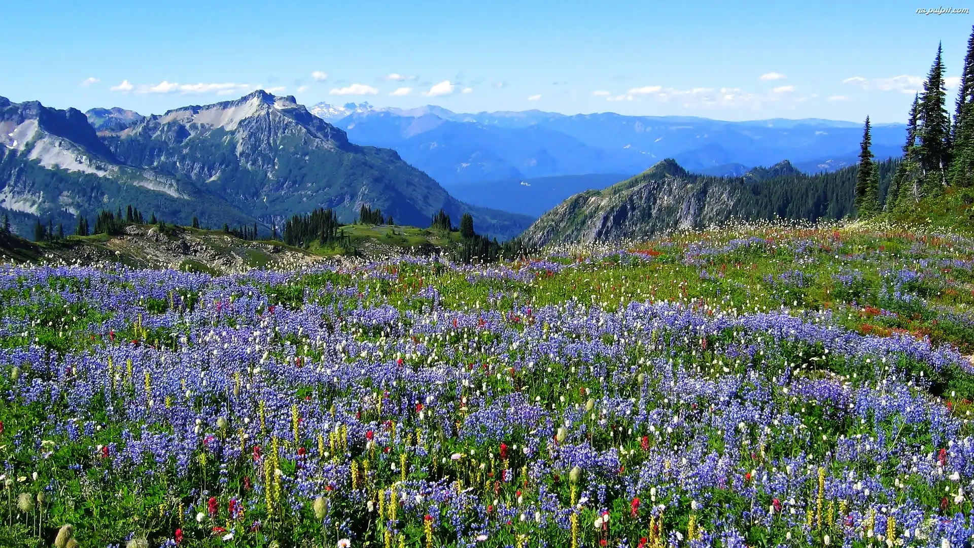Góry, Łąka, Kwiaty