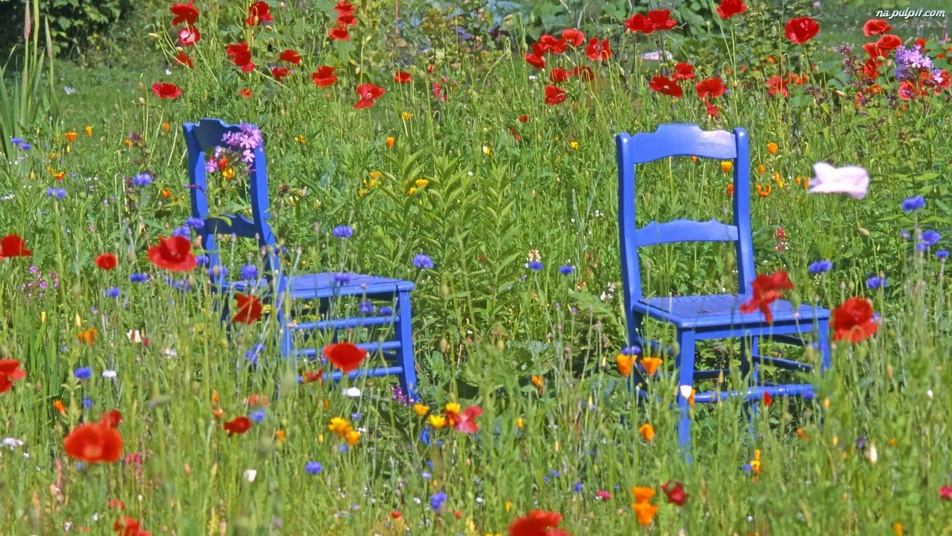 Krzesła, Maki, Kwiaty, Łąka, Chabry Na Pulpit