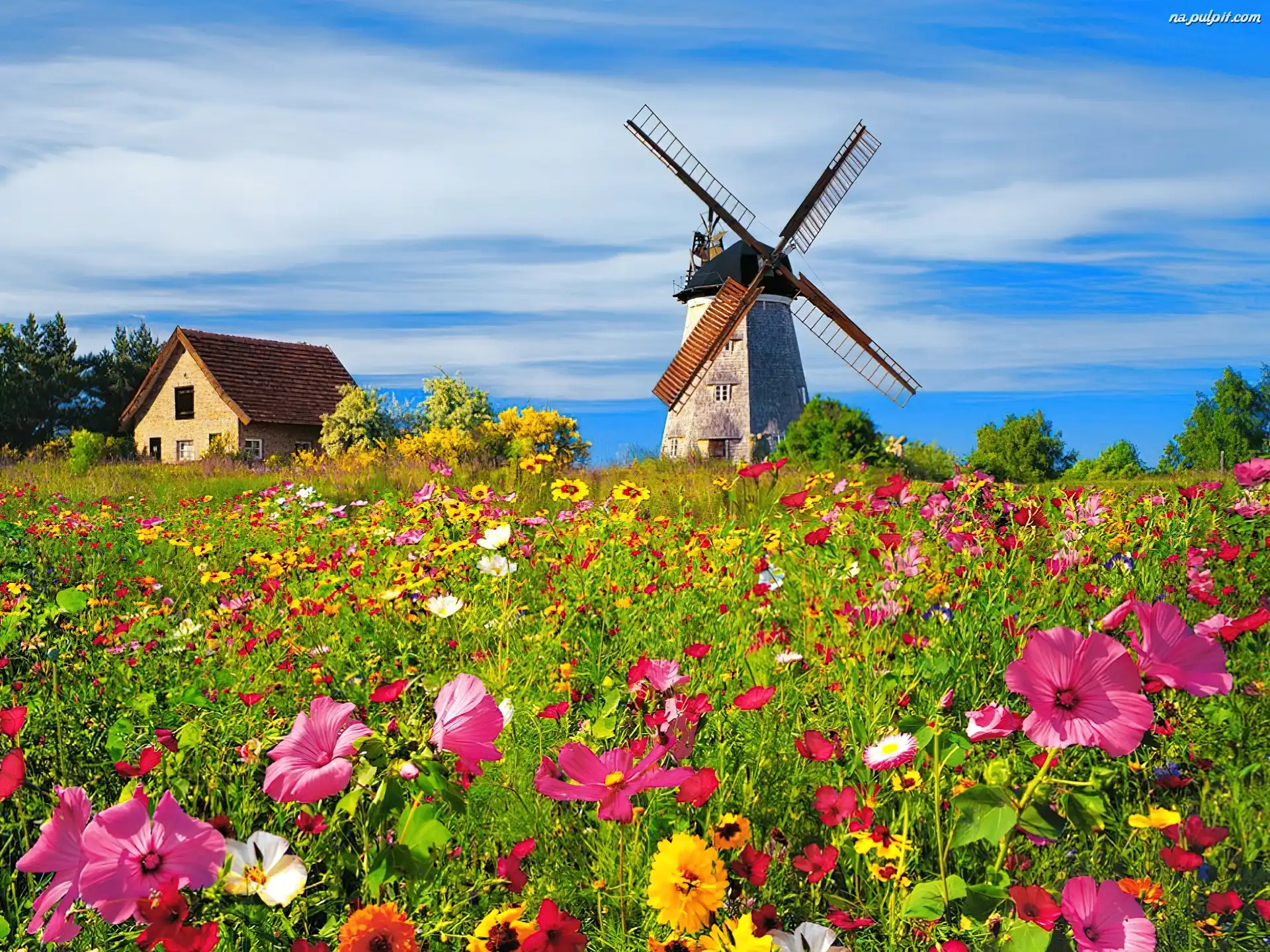 Wiatrak, Łąka, Kwiaty Na Pulpit