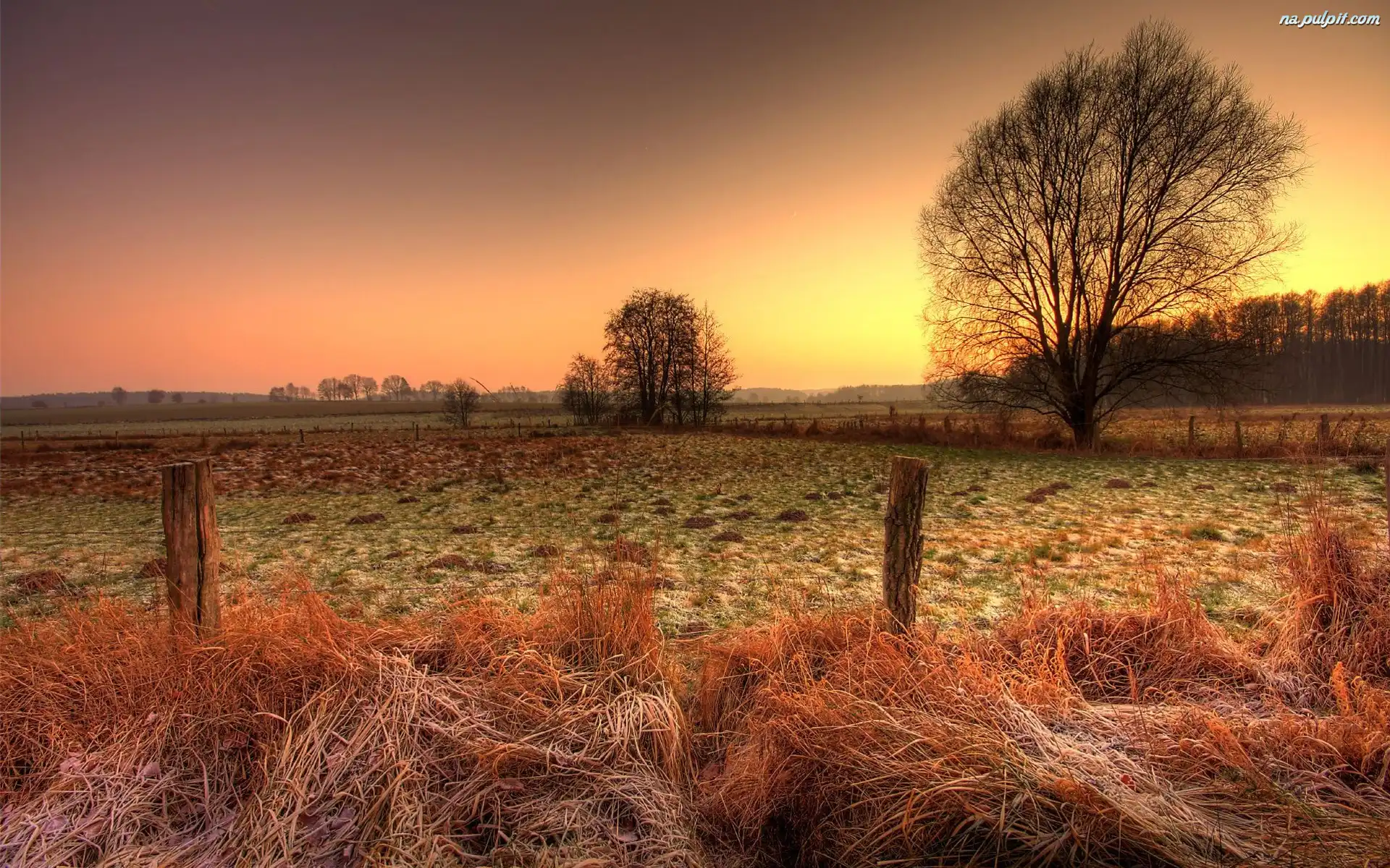 Jesień, Łąki, Słońca, Szron, Lasy, Pola, Zachód