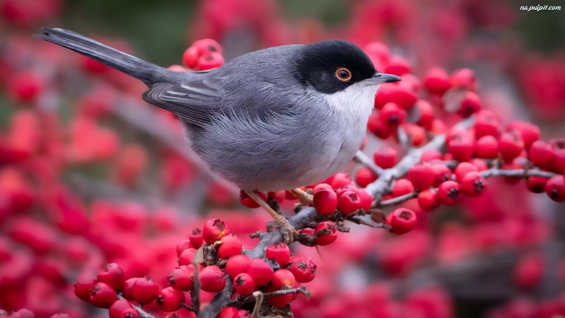 Czerwone, Siwy, Pokrzewka aksamitna, Gałązka, Ptak, Owoce Na Pulpit