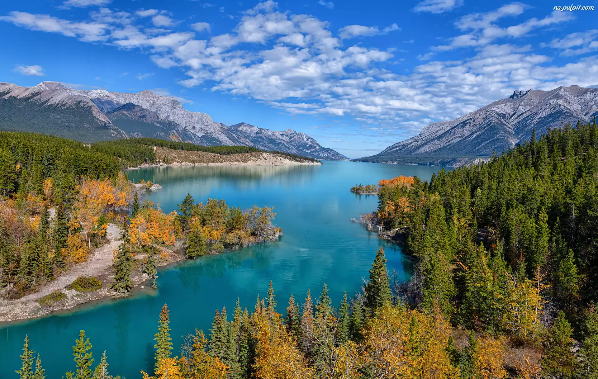 Lasy, Jezioro, Drzewa, Góry Skaliste, Kanada, Alberta, Canadian Rockies, Abraham Lake Na Pulpit