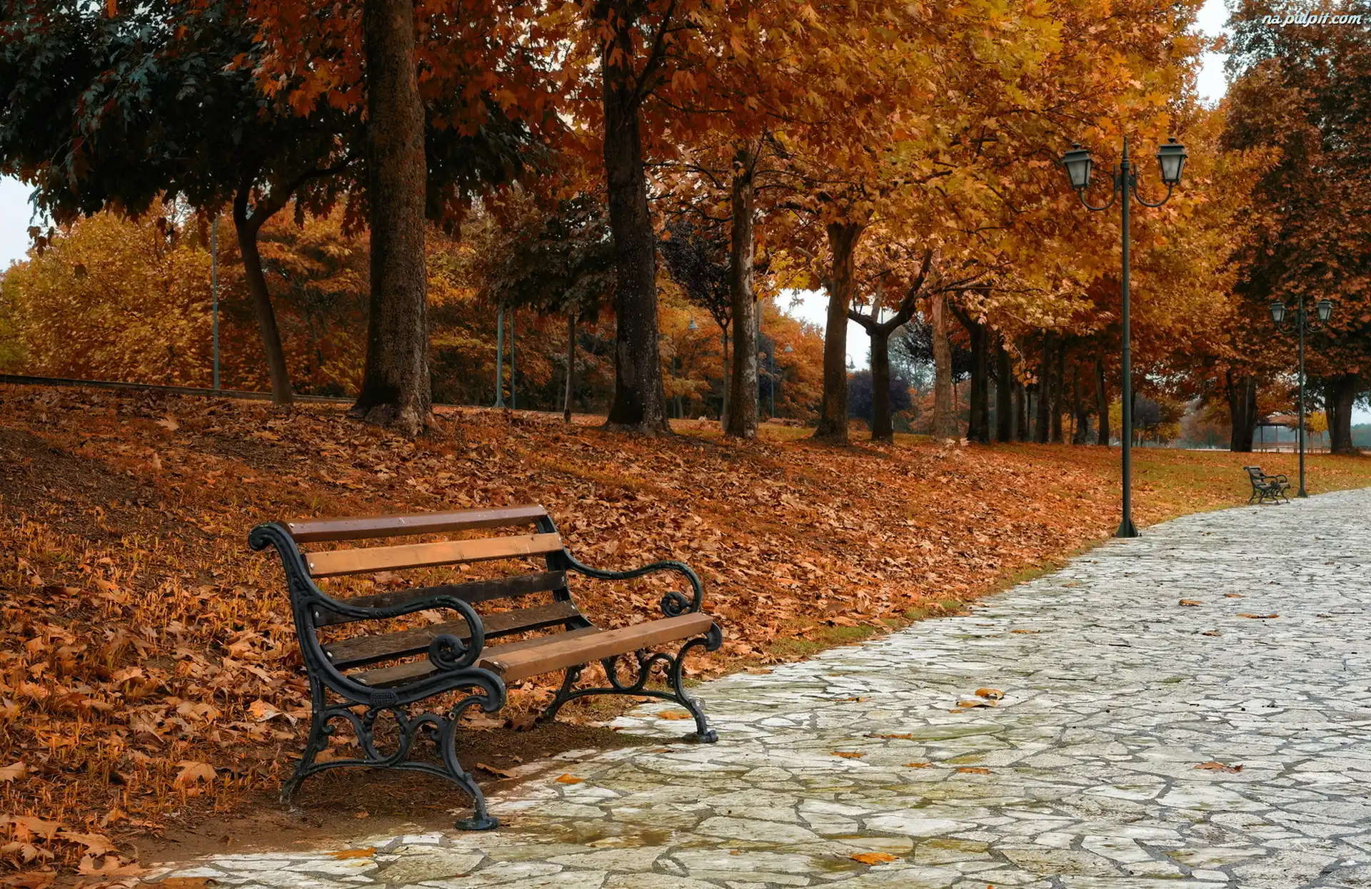Aleja, Park, Jesień, Ławka Na Pulpit
