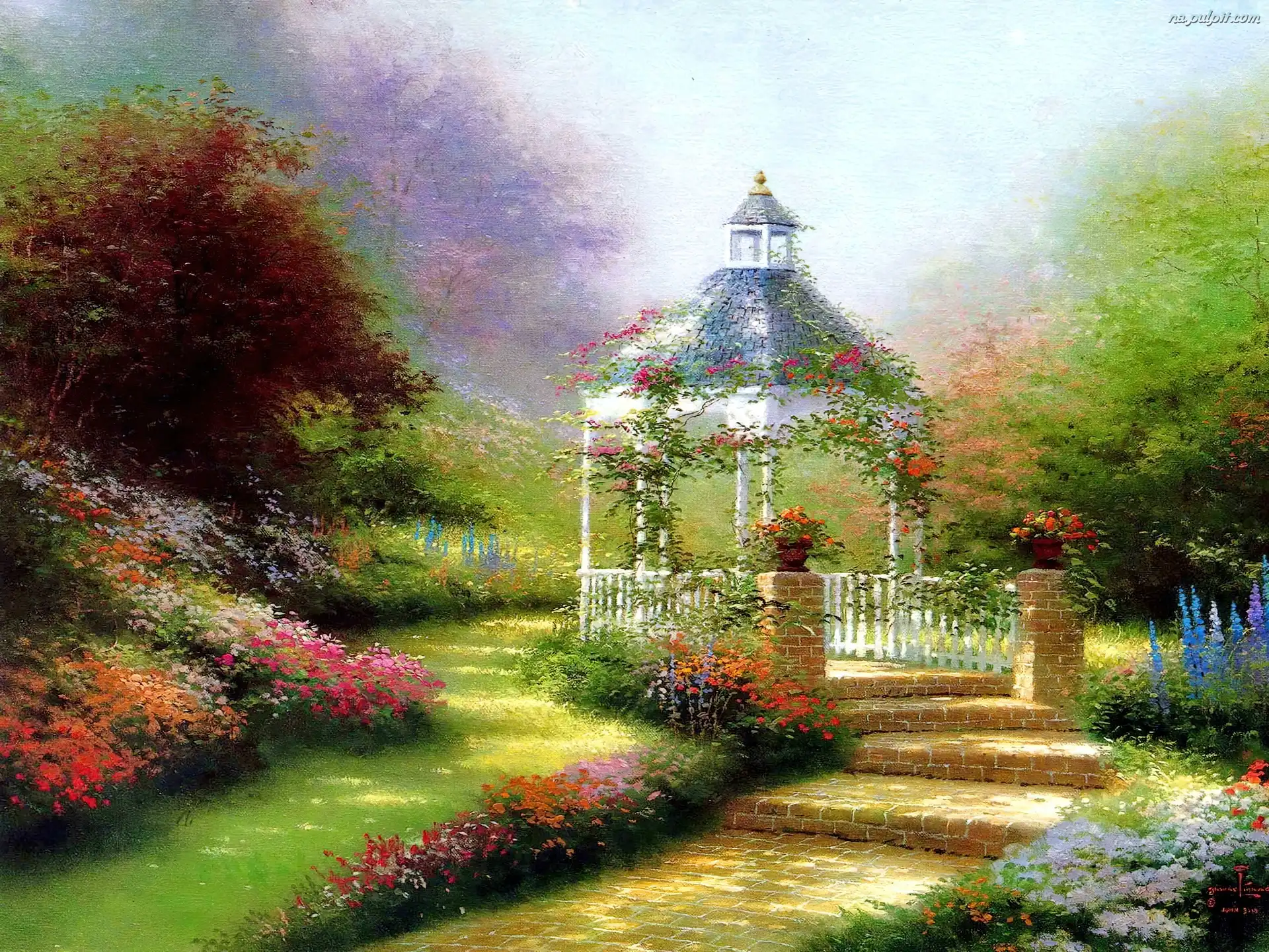 Alejka, Trawnik, Altanka, Ogród, Kwiaty Na Pulpit