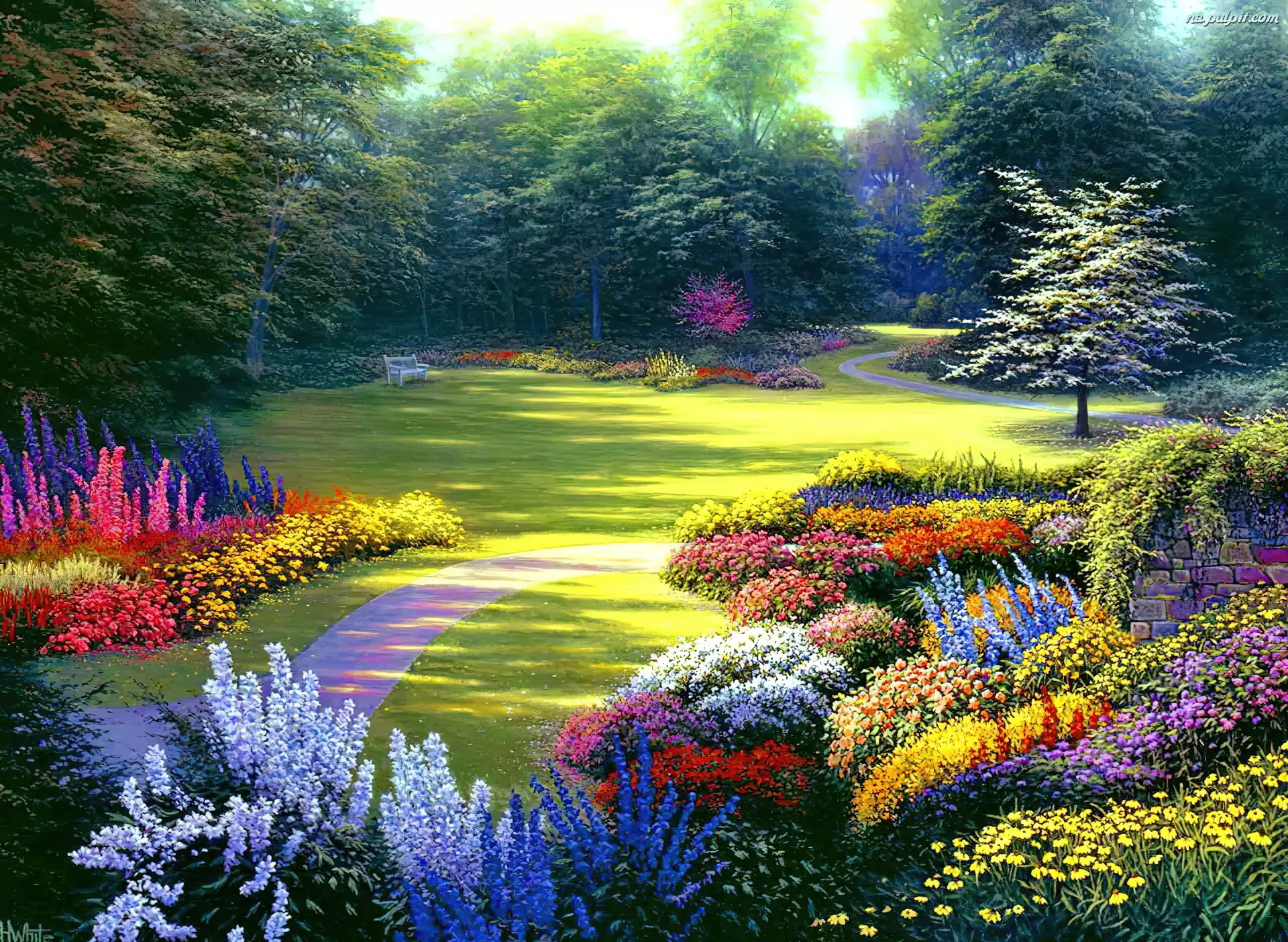 Alejka, Kolorowe, Ogród, Kwiaty Na Pulpit