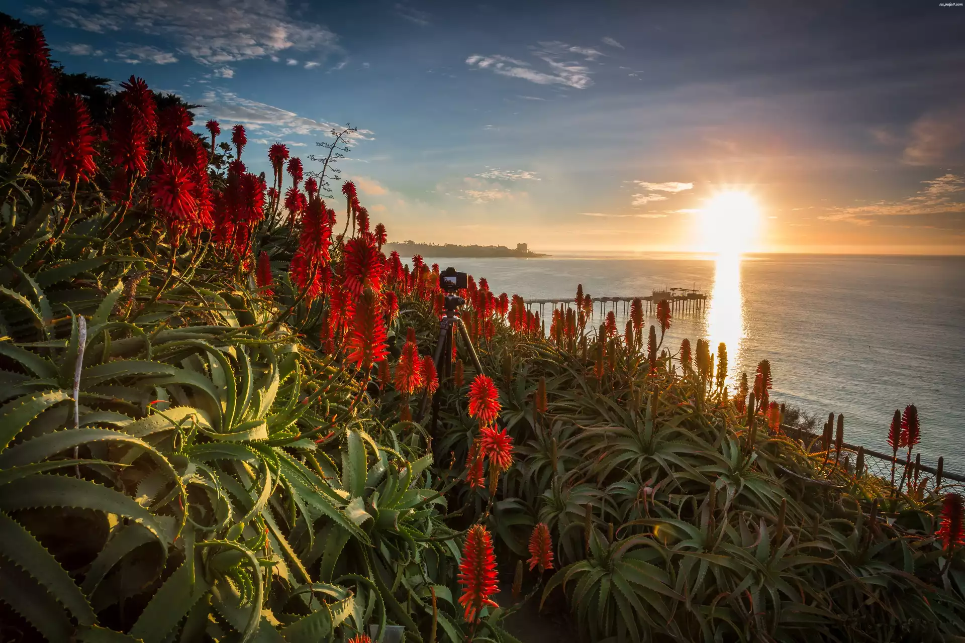 Aloes, Słońca, Statyw, Morze, Kwitnący, Promienie