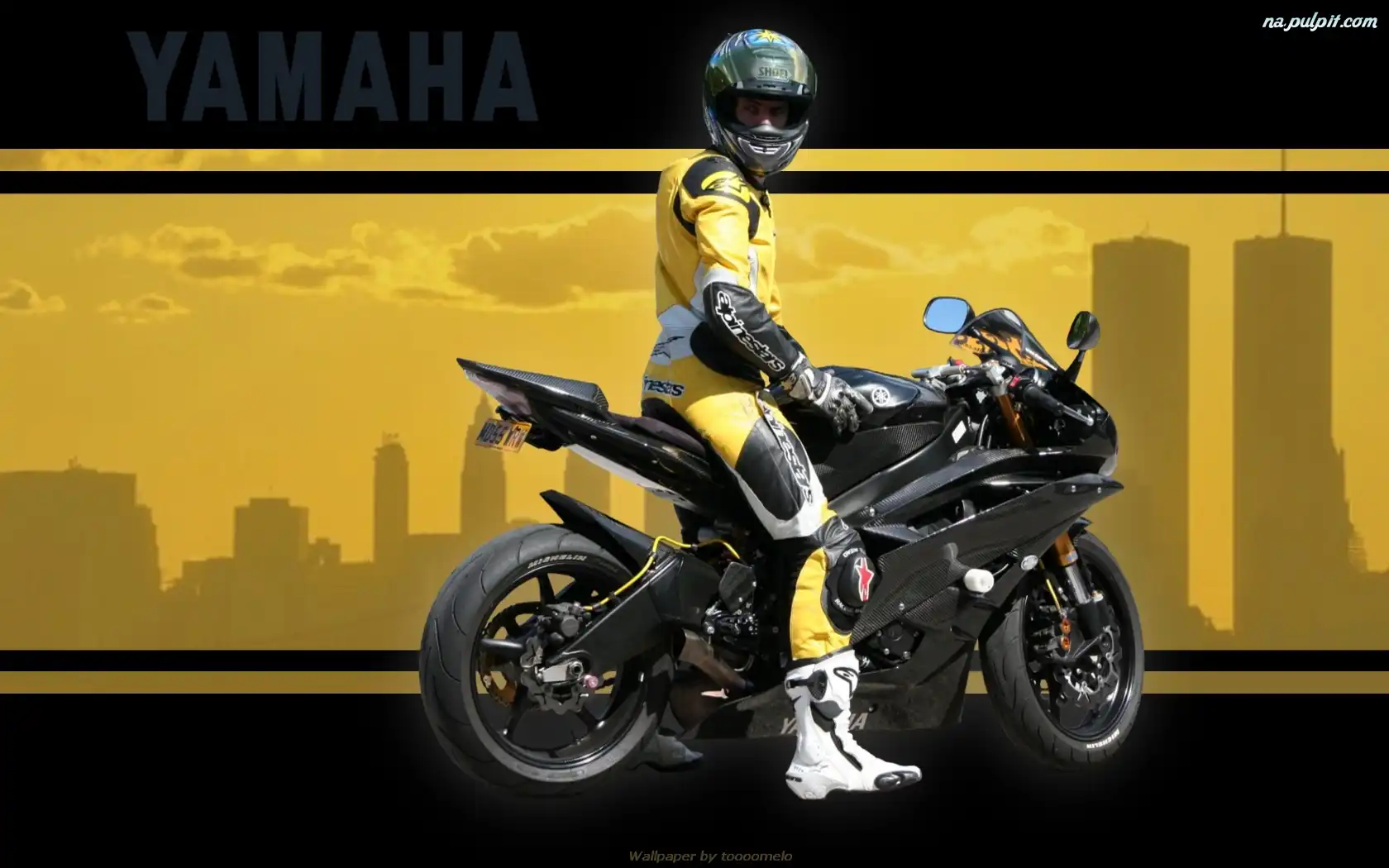 Alpinestars, Czarna, Yamaha R1 BMW R1200GS, szybka Suzuki GSX-R 1000, K1 Kawasaki ZX-6R Srebrna, Yamaha YZF R1 Honda CBR 250R Triumph Daytona 675SE Yamaha YZF R1, Tor BMW HP2 Sport Tłumik, Żółte, Suzuki GSX-R600 Wydechowy, Buell 1125R, Kolektor Kolano, Wyścig, Triumph TT 600, Tor Sportowe, lusterka, żółty, Ścigacze, kierownica, koła, opony , światła , tłumik , Triumph, siedzenie Yamaha YZF R1, Podnośnik