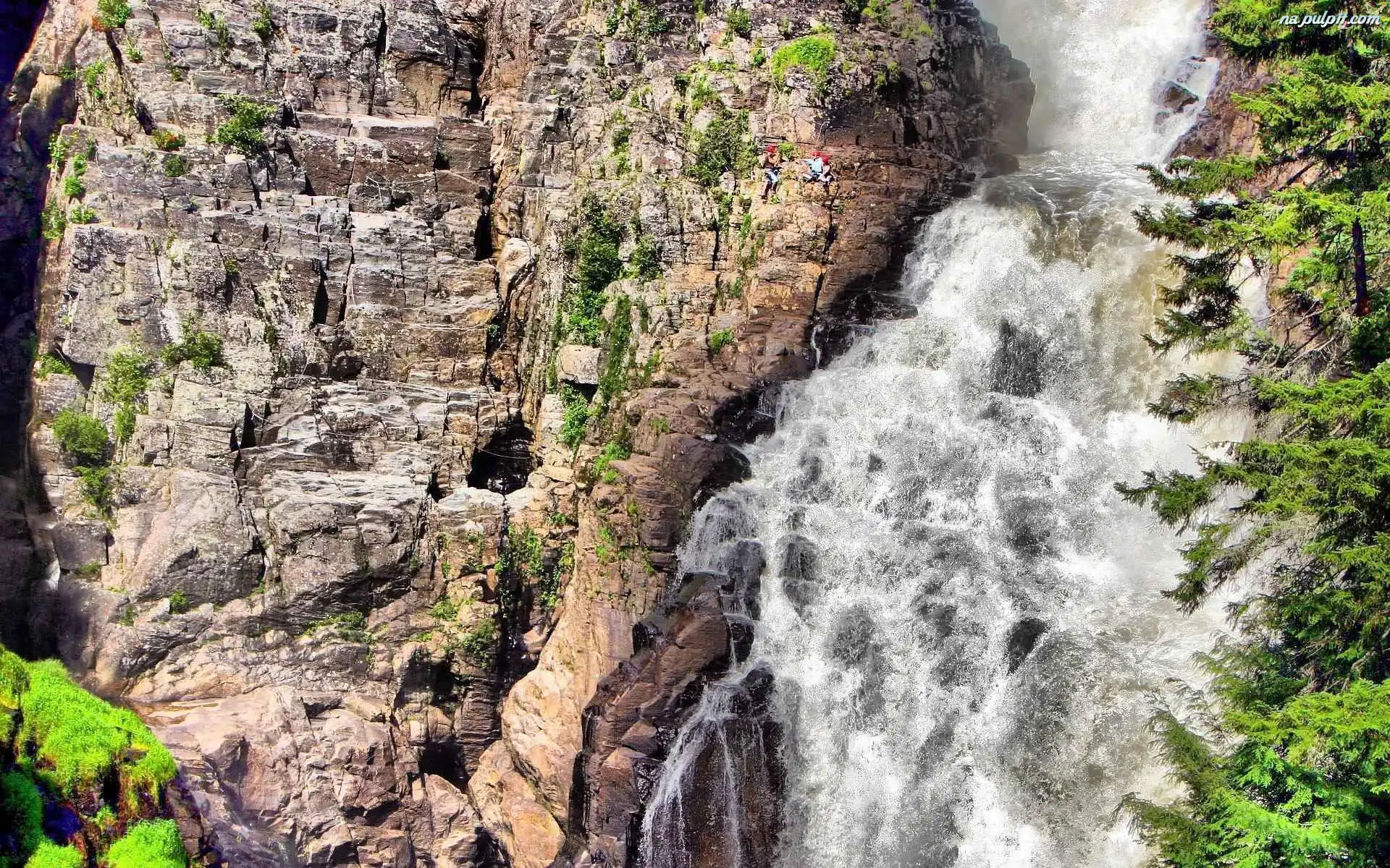 Alpiniści, Skały, Wodospad, Drzewo Na Pulpit