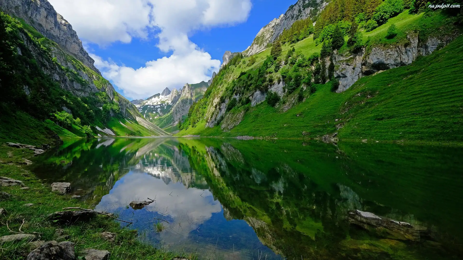 Odbicie, Gmina Rute, Chmury, Góry Alpy, Kanton Appenzell Innerrhoden, Szwajcaria, Jezioro Falensee Na Pulpit |